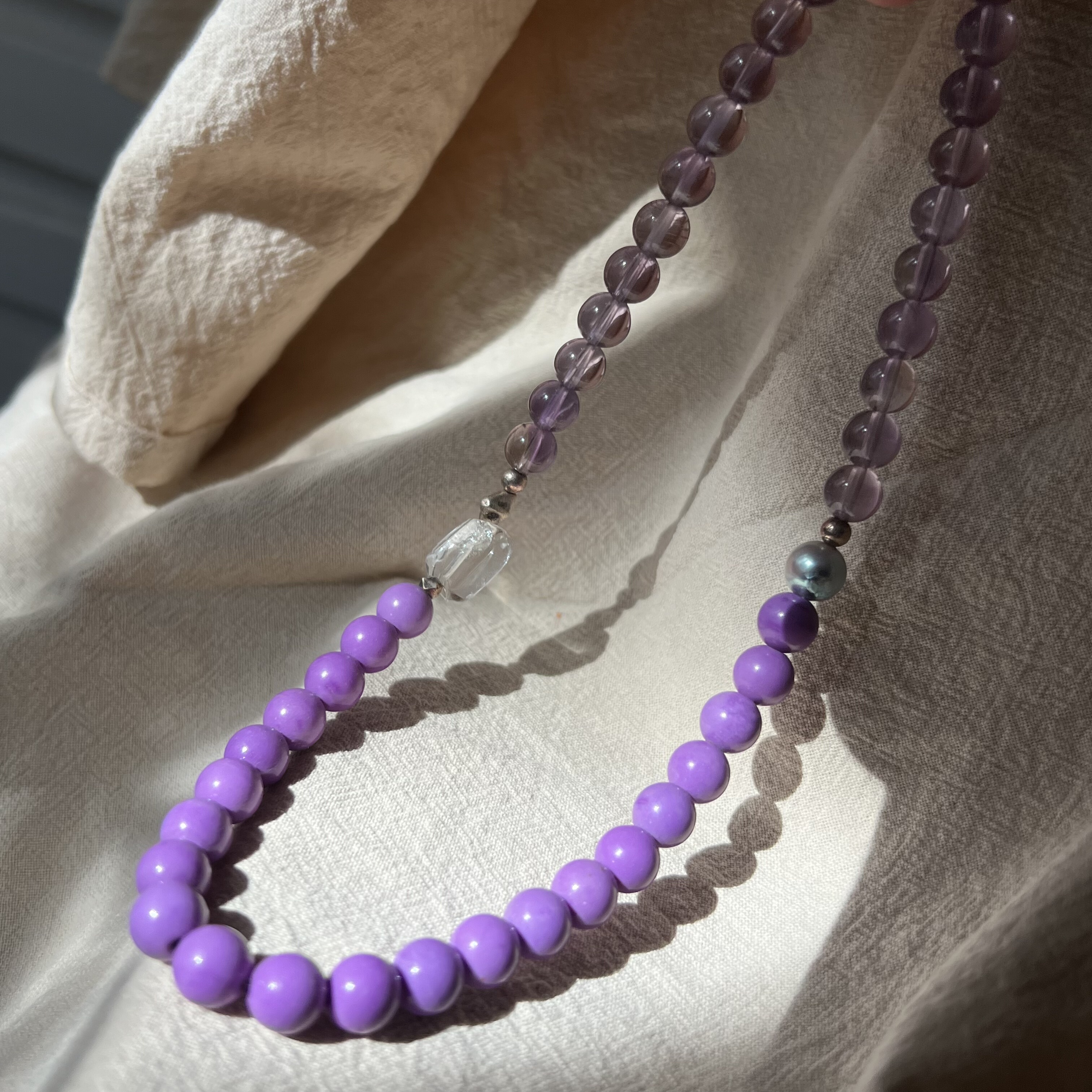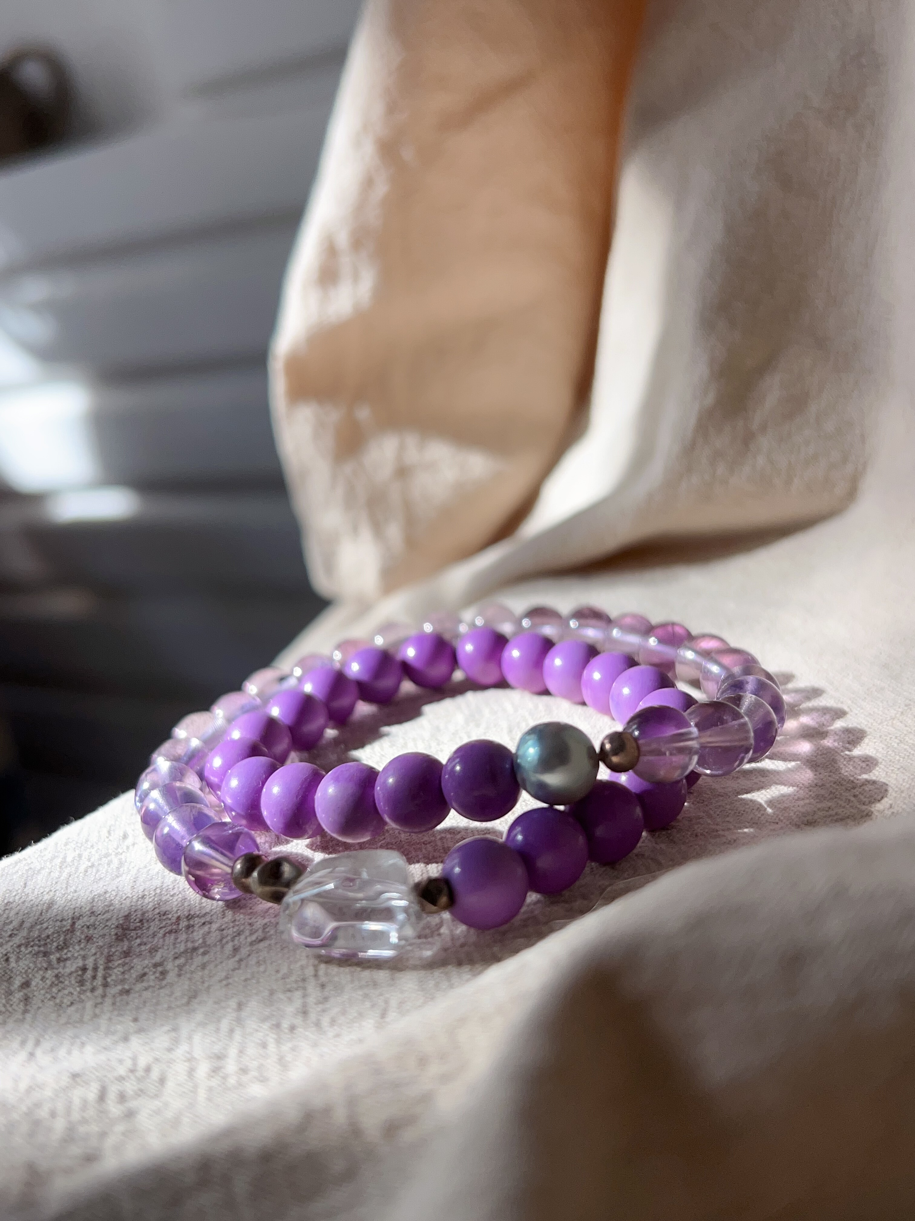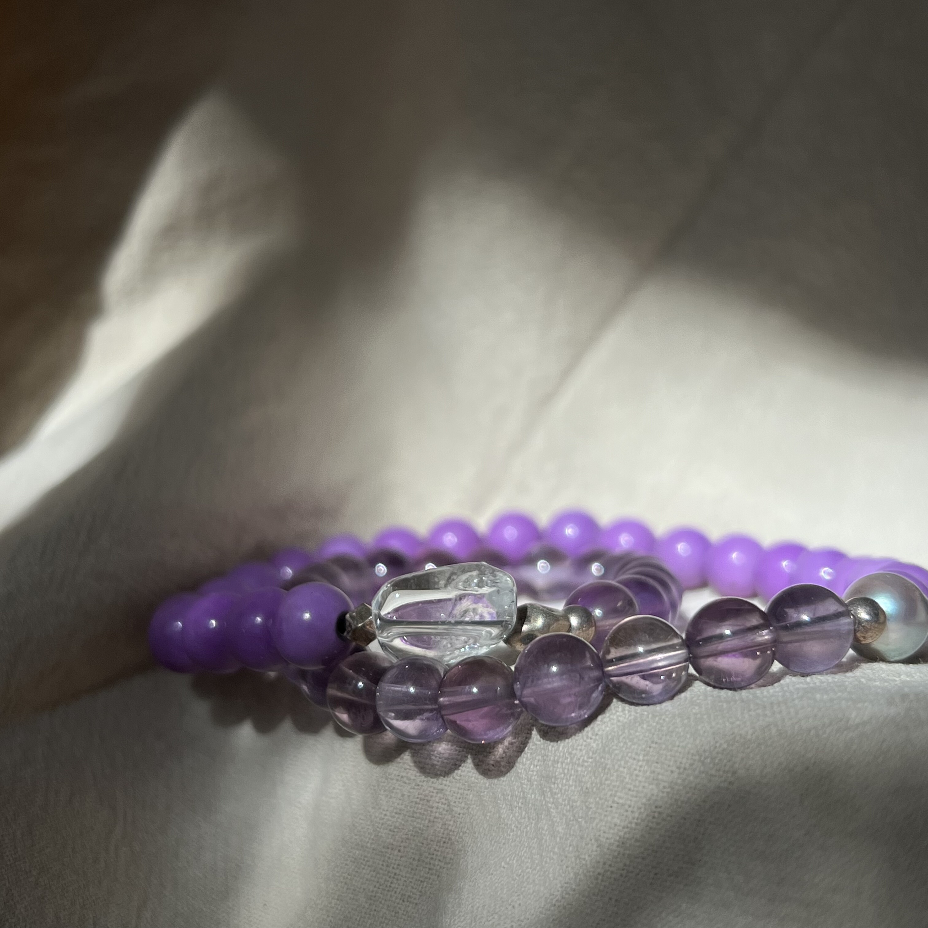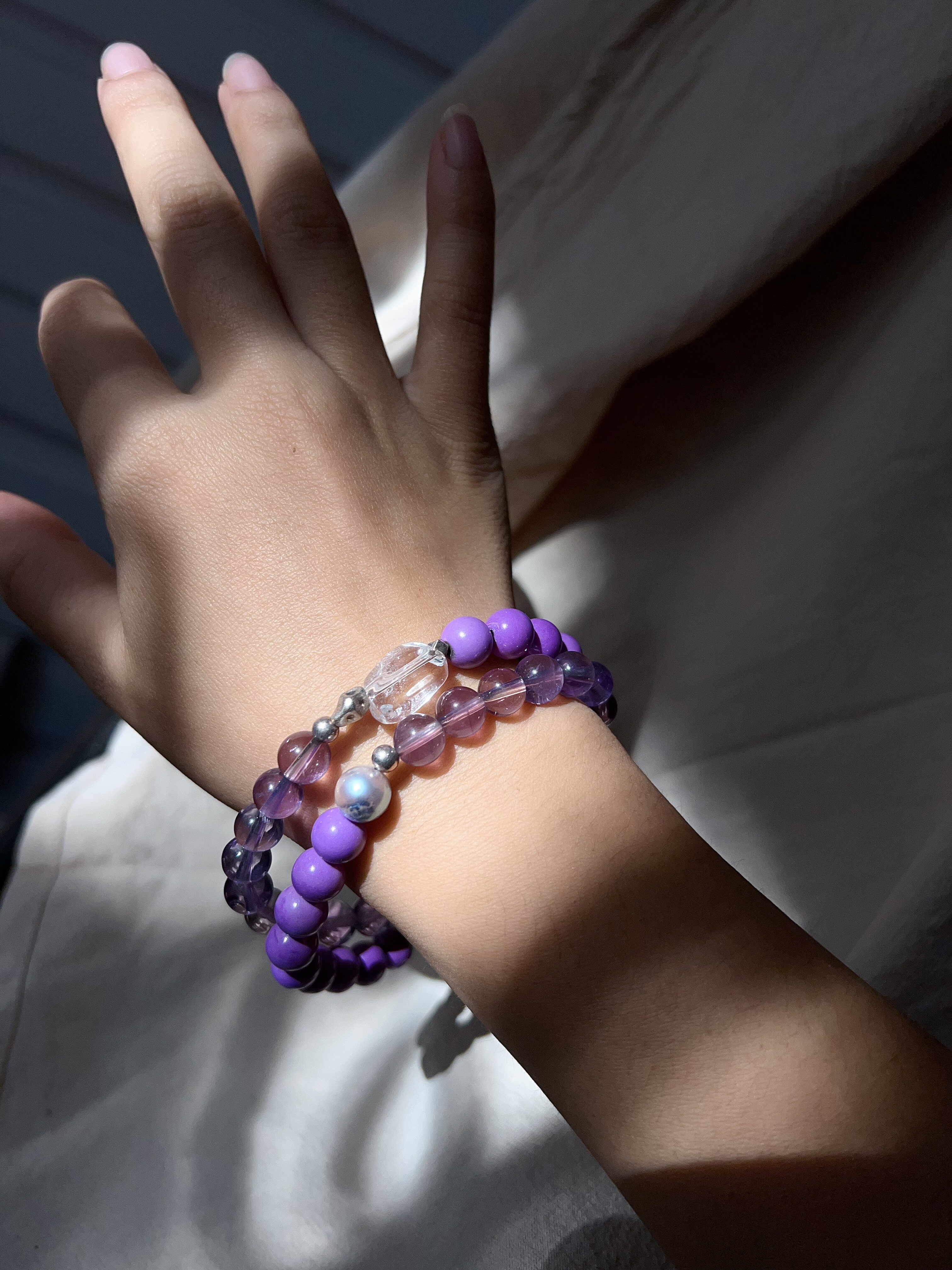 原创设计文艺孤品玻利维亚紫水晶紫云母紫色双圈手链白水晶真多麻
