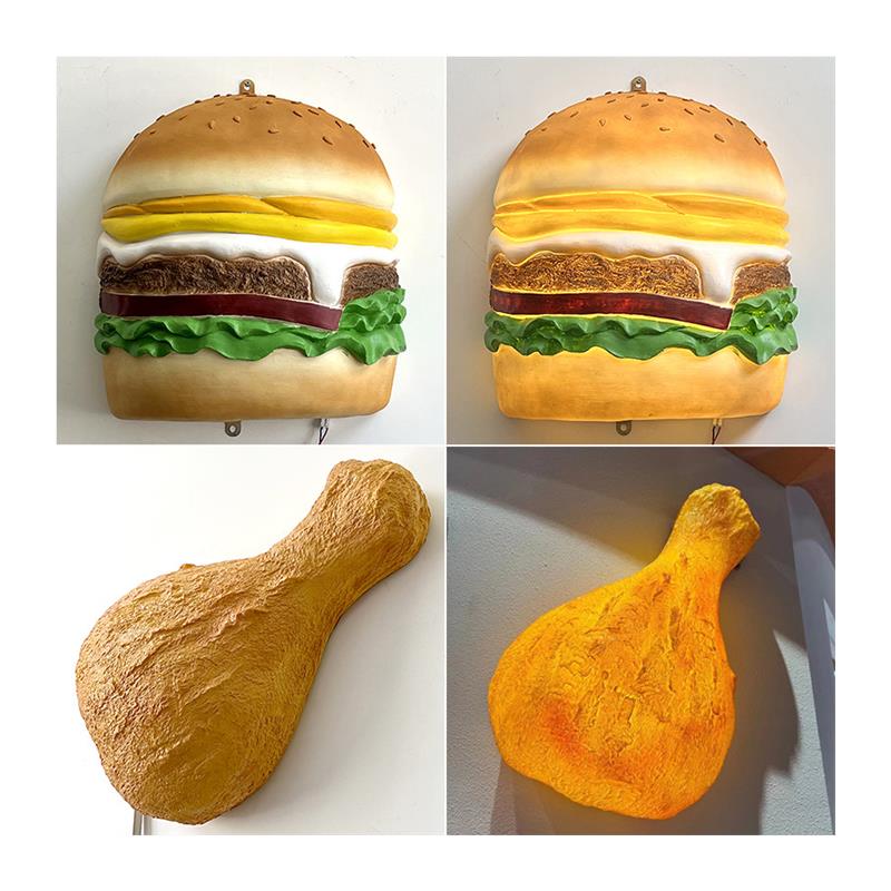 爆款网红大型仿真发光汉堡面包玻璃钢雕塑模型店门头招牌壁挂灯箱