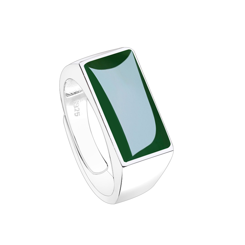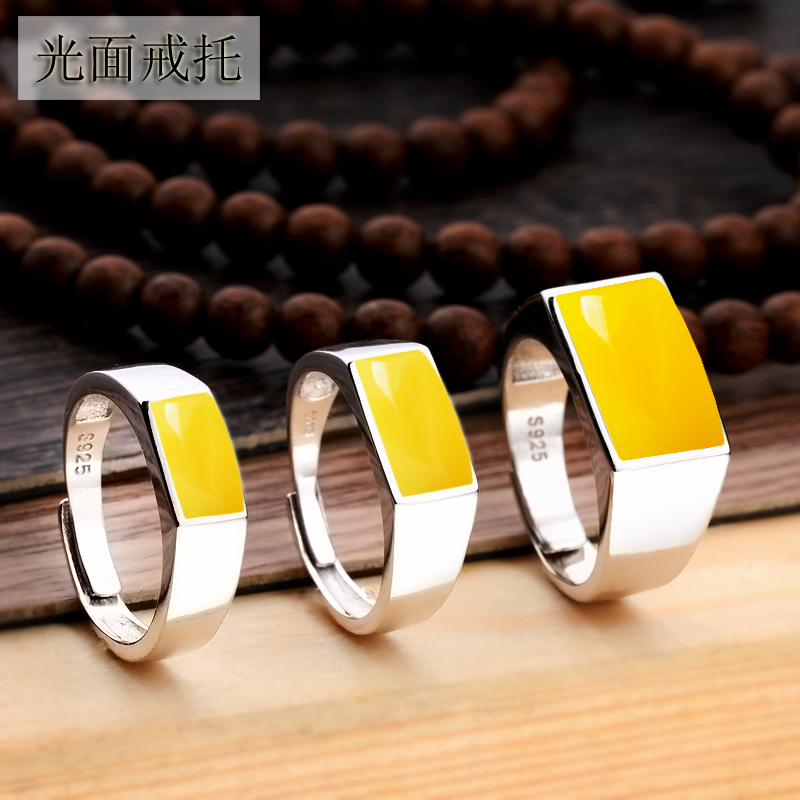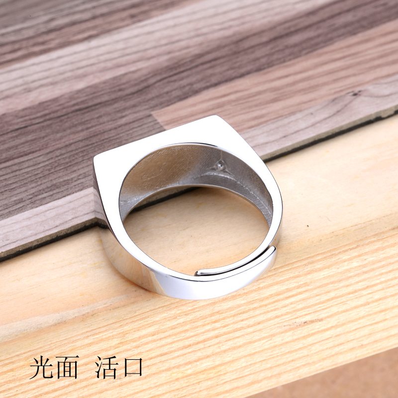 S925纯银戒指空托光面男女镶嵌绿松石蜜蜡玉石银饰方形戒托10*14