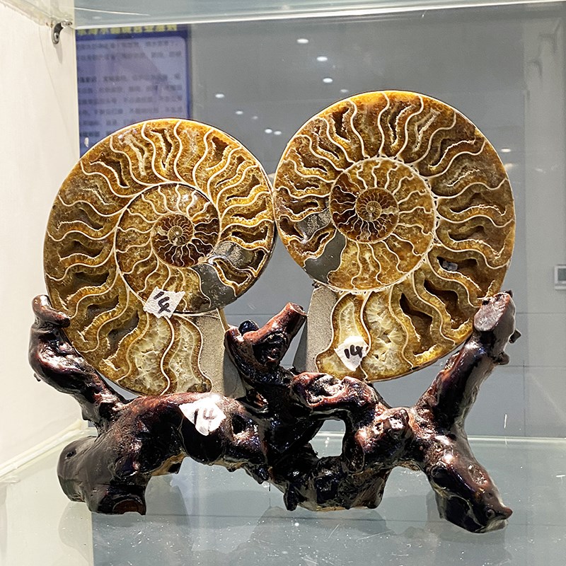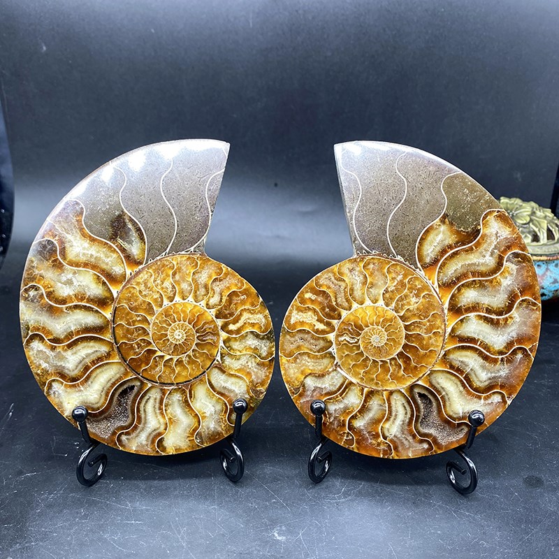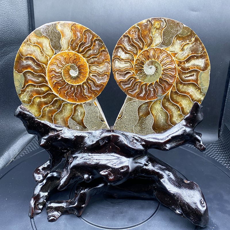 马达加斯加古生物化石斑彩螺菊石切片标本办公家居玄关观赏摆件