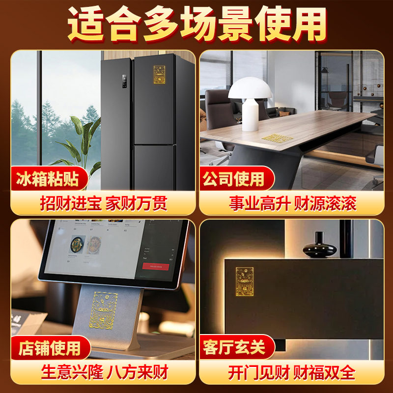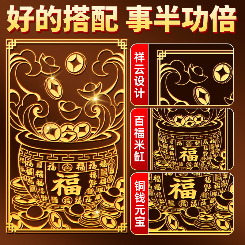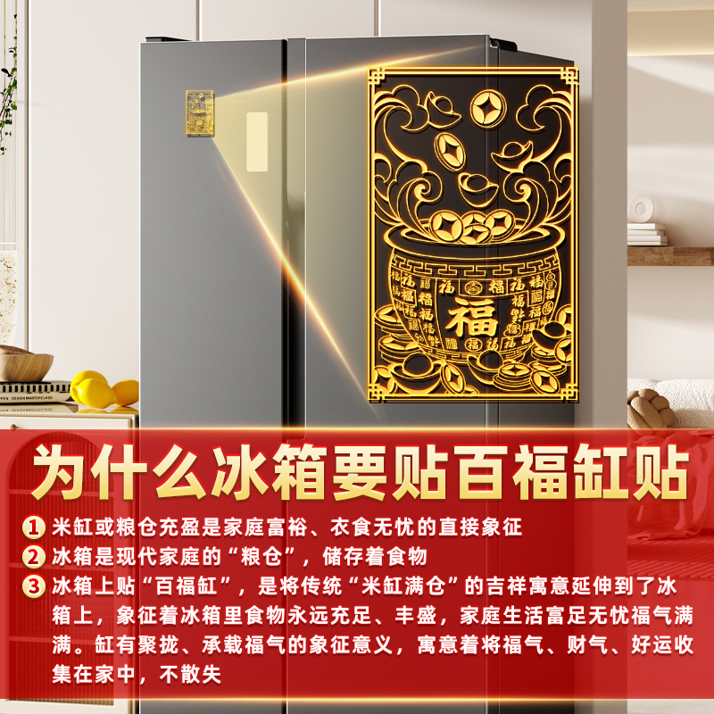 百福米缸冰箱上的黄铜米缸贴纸聚宝盆金属手机贴店铺客厅冰箱贴纸
