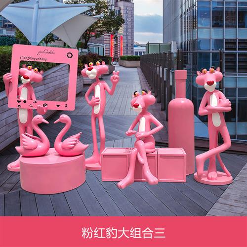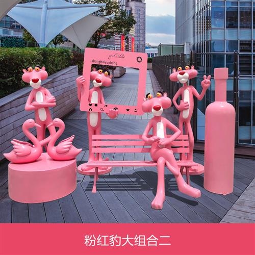 卡通大型网红户外粉红豹玻璃钢雕塑商场售楼处奶茶店景点拍照摆件