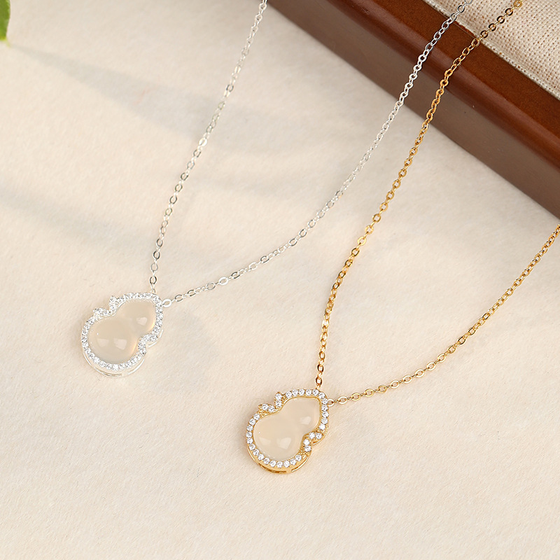 新中式玉髓葫芦项链女纯银复古国潮气质锁骨链轻奢百搭同款