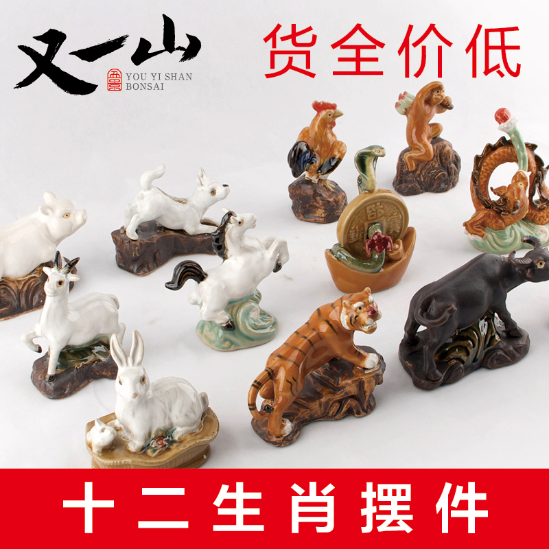 十二生肖家居装饰陶瓷摆件上水石吸水石假山鱼缸水族盆景动物摆件
