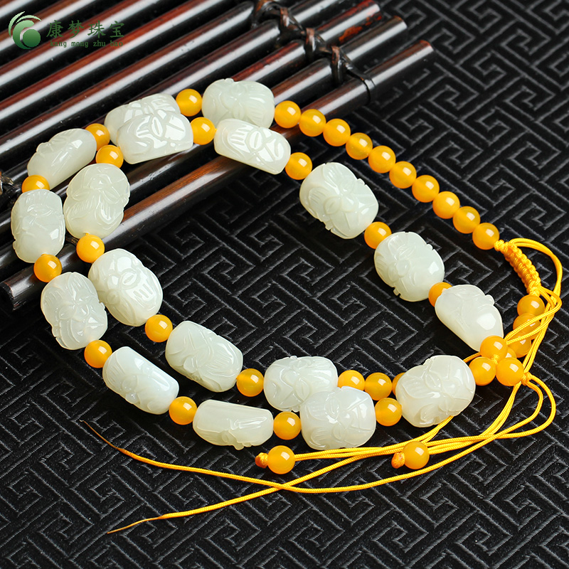 天然新疆和田玉白玉项链十八罗汉项链男女款手编玉器玉石项链挂件