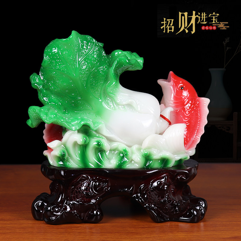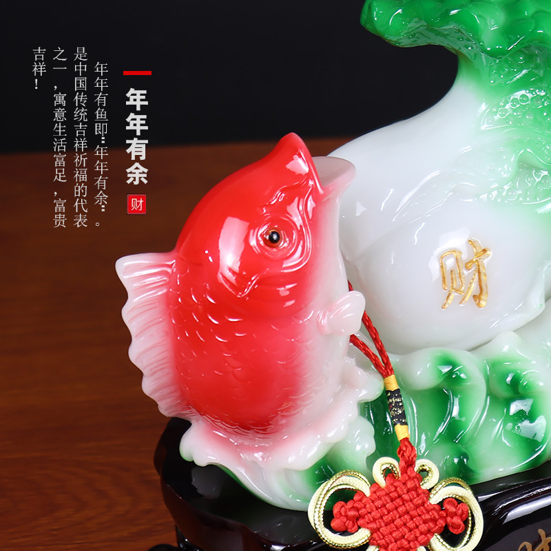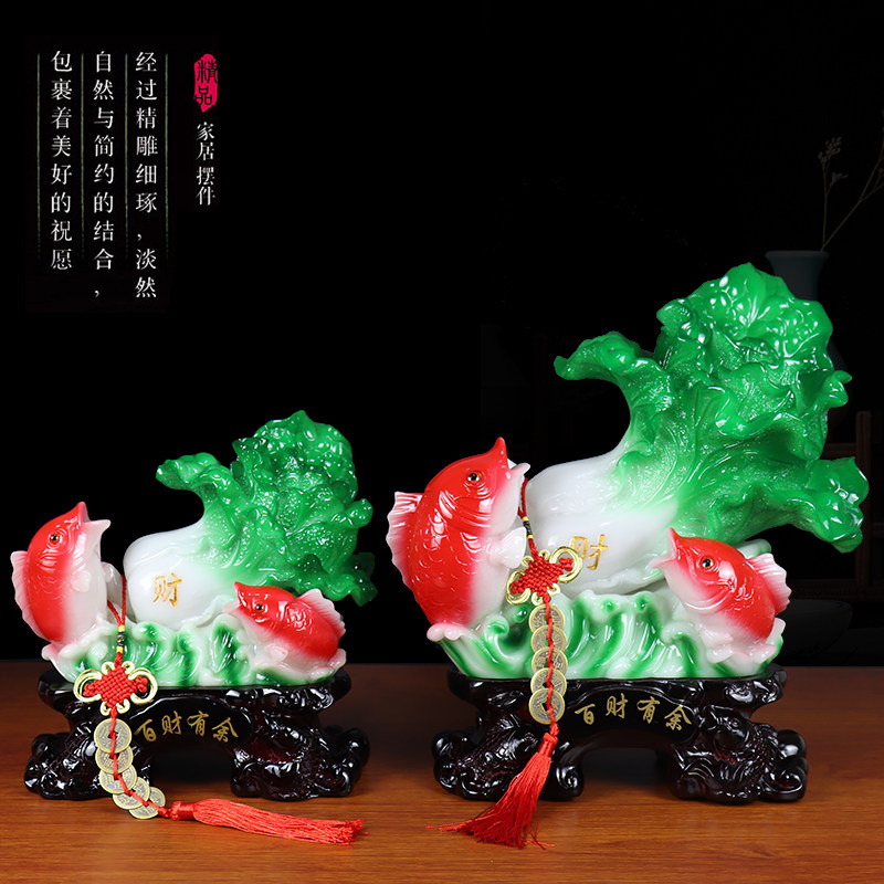 招财鱼摆件百财有鱼玉白菜工艺品家居客厅装饰品开业开张乔迁礼品