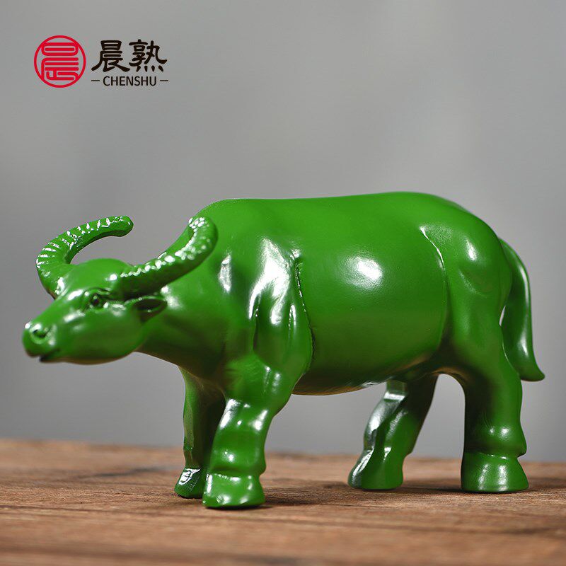 木雕水牛摆件实木质绿色水牛十二生肖牛大号卧牛家居装饰工艺品
