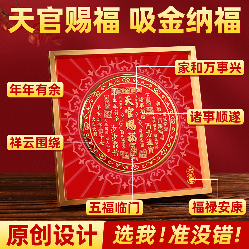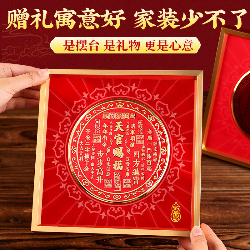 天官赐福摆件金属摆台客厅玄关办公室装饰画乔迁新居礼品喜庆摆台