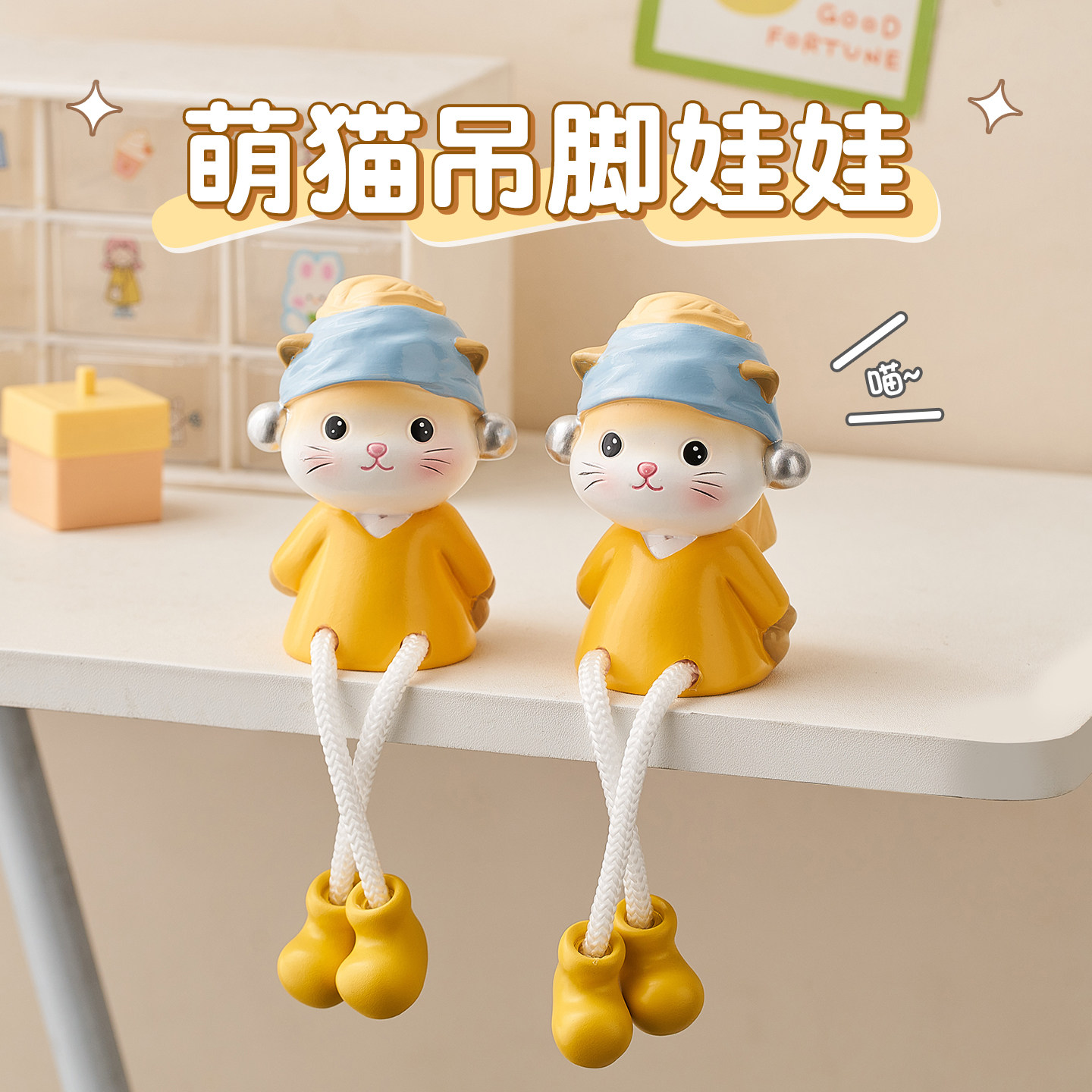 可爱卡通珍珠猫吊脚娃娃摆件家用客厅玄关书房书架装饰摆设高颜值