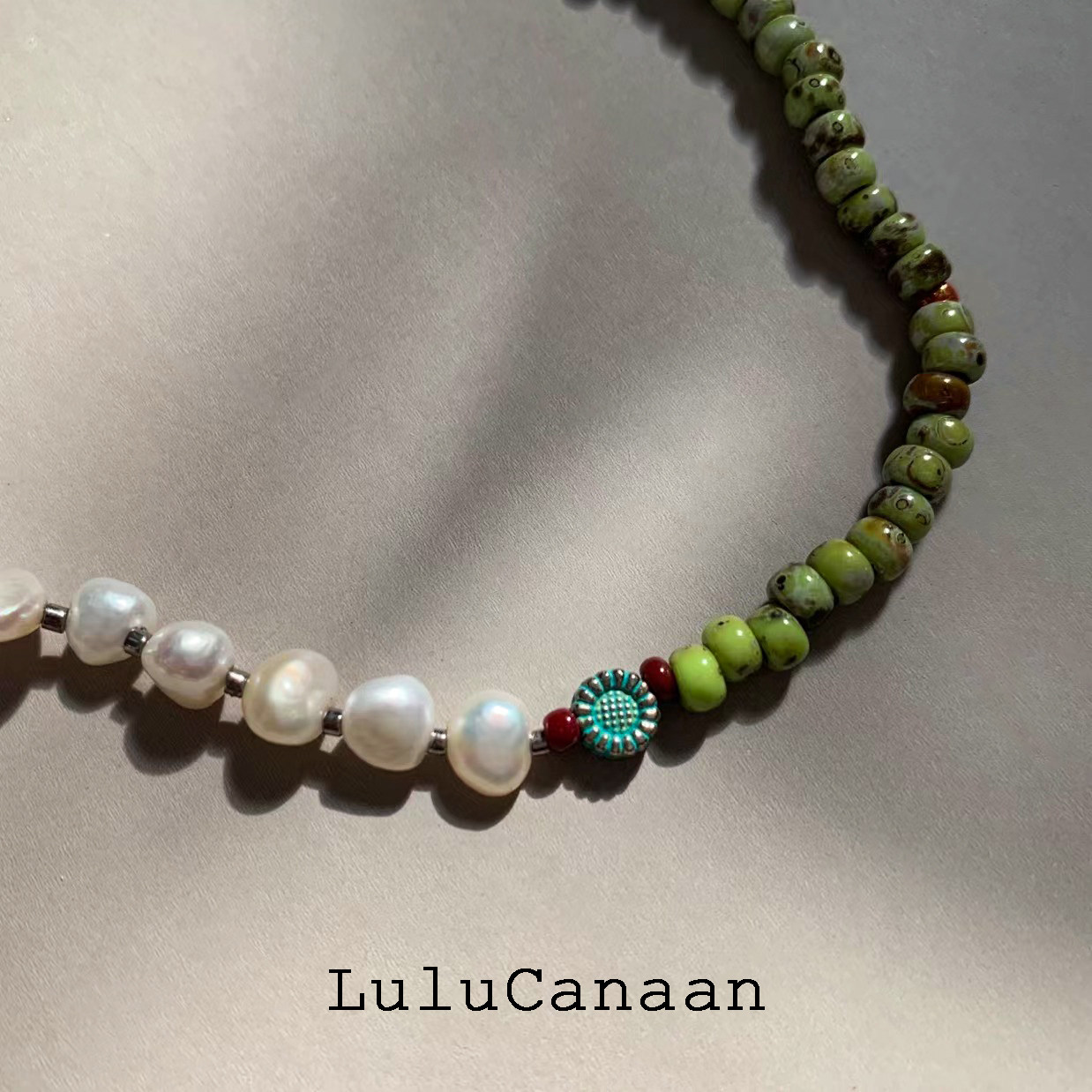 LuluCanaan毕加索油画古董玻璃珠项链天然巴洛克珍珠短项链中性风