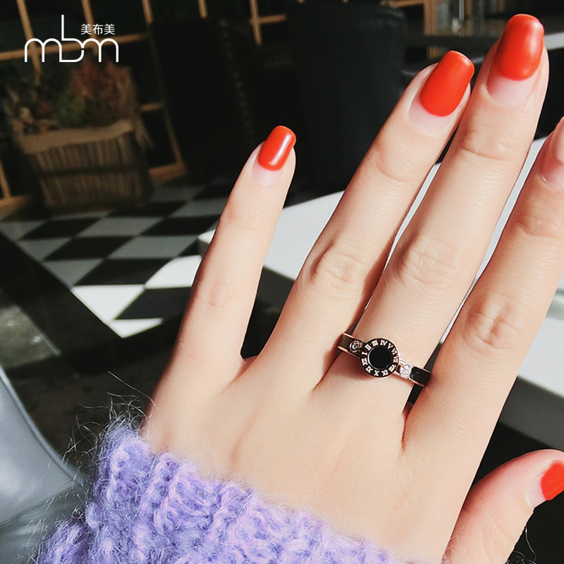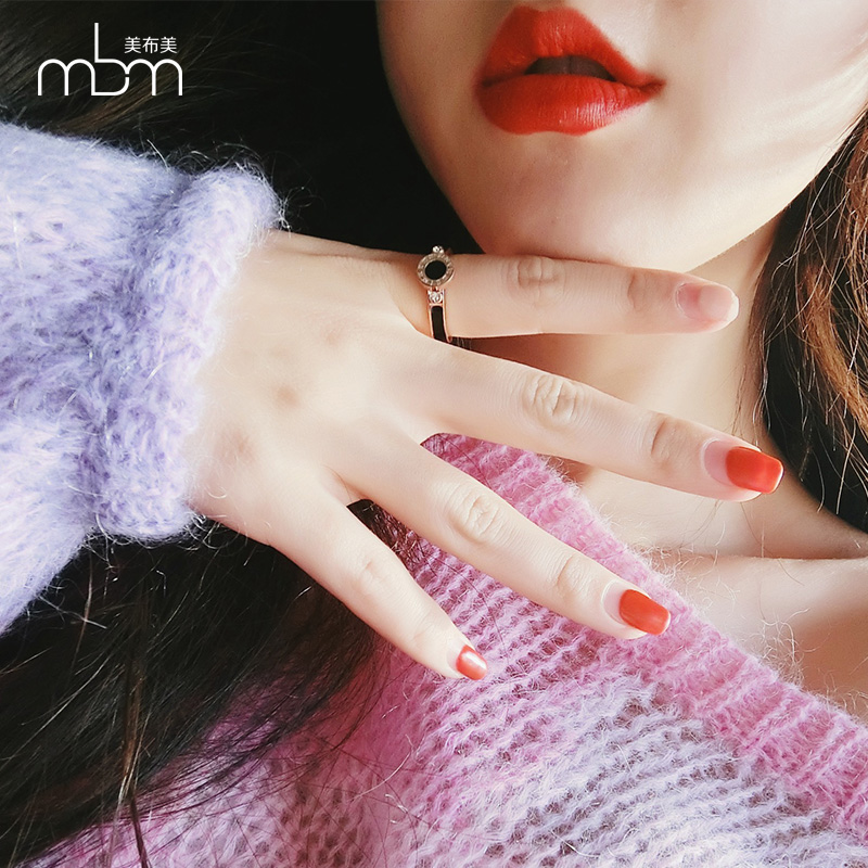 潮人个性黑面食指戒指女欧美镀18玫瑰金网红大气关节指环钛钢戒指