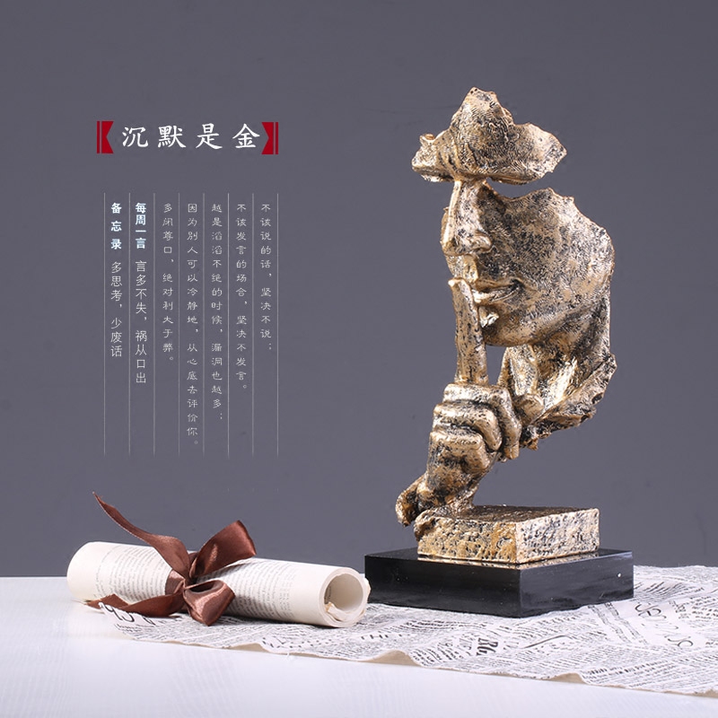 创意欧式雕塑工艺品沉默是金客厅小摆件抽象人物现代简约办公室设