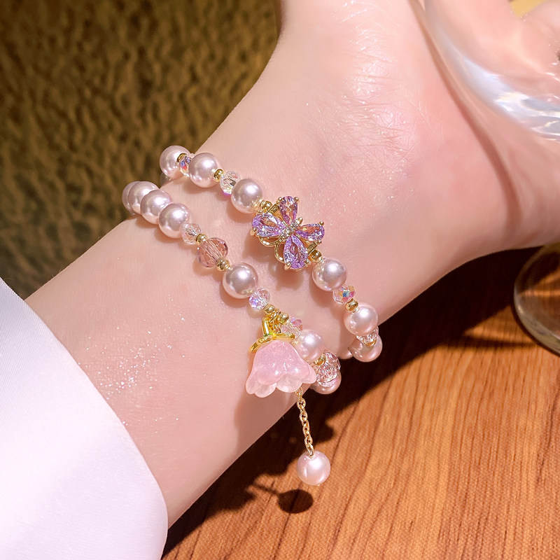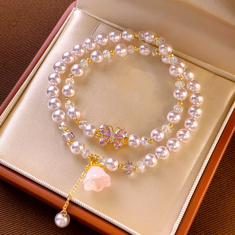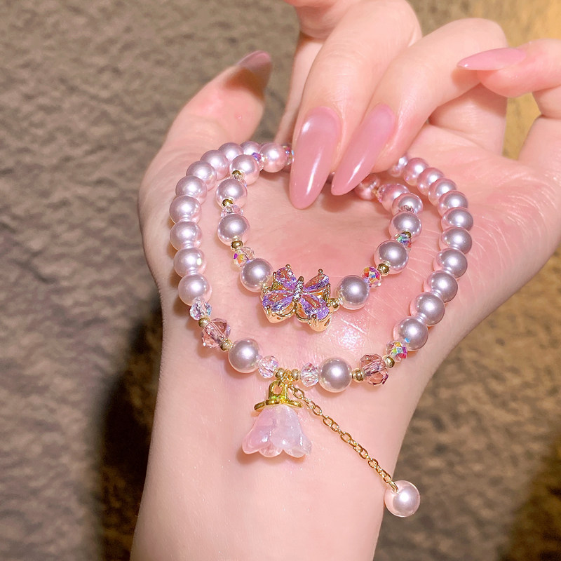2026新款叠戴珍珠串珠紫色锆石手串闺蜜手饰女款轻奢小众精致手链