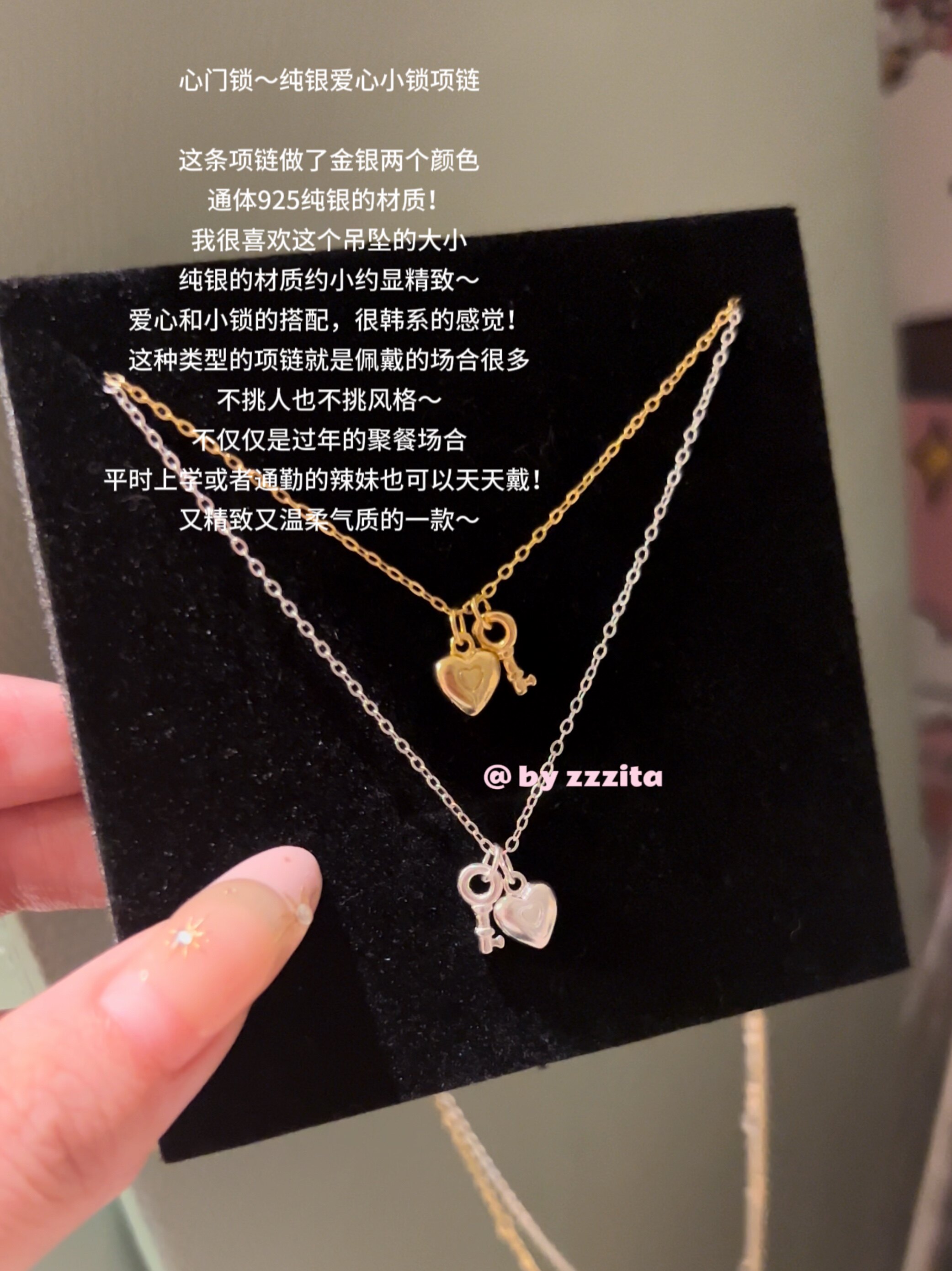 ZZZITA 心门锁~通体925纯银迷你爱心小锁项链气质百搭韩系锁骨链