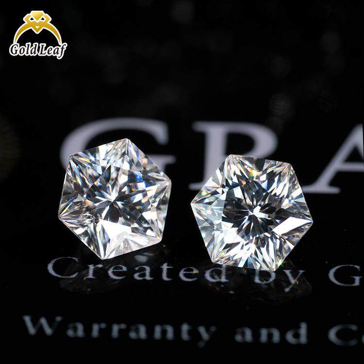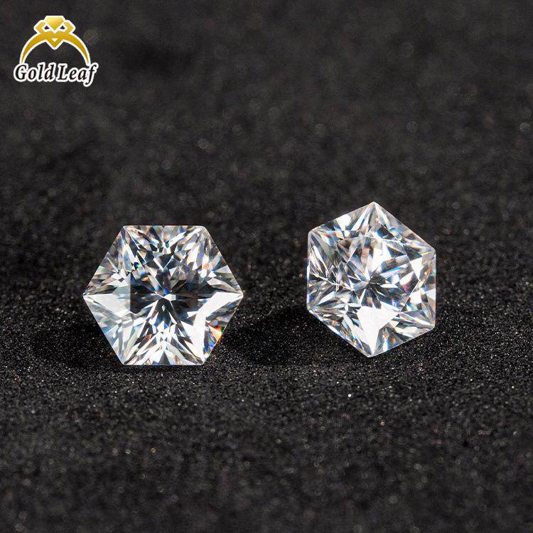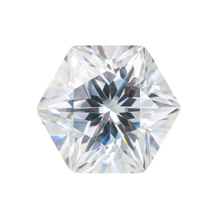 梧州人工宝石六边形莫桑钻白色莫桑石裸石戒面镶嵌配石腰码齐