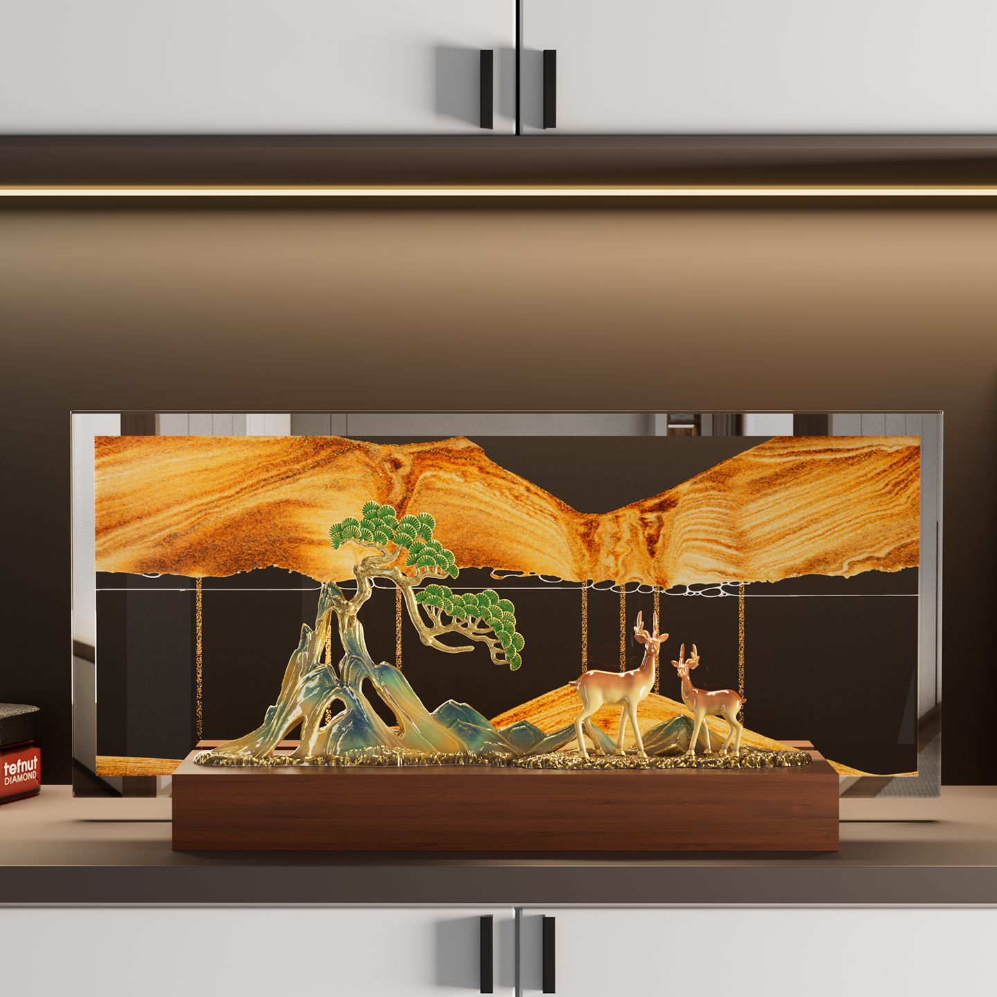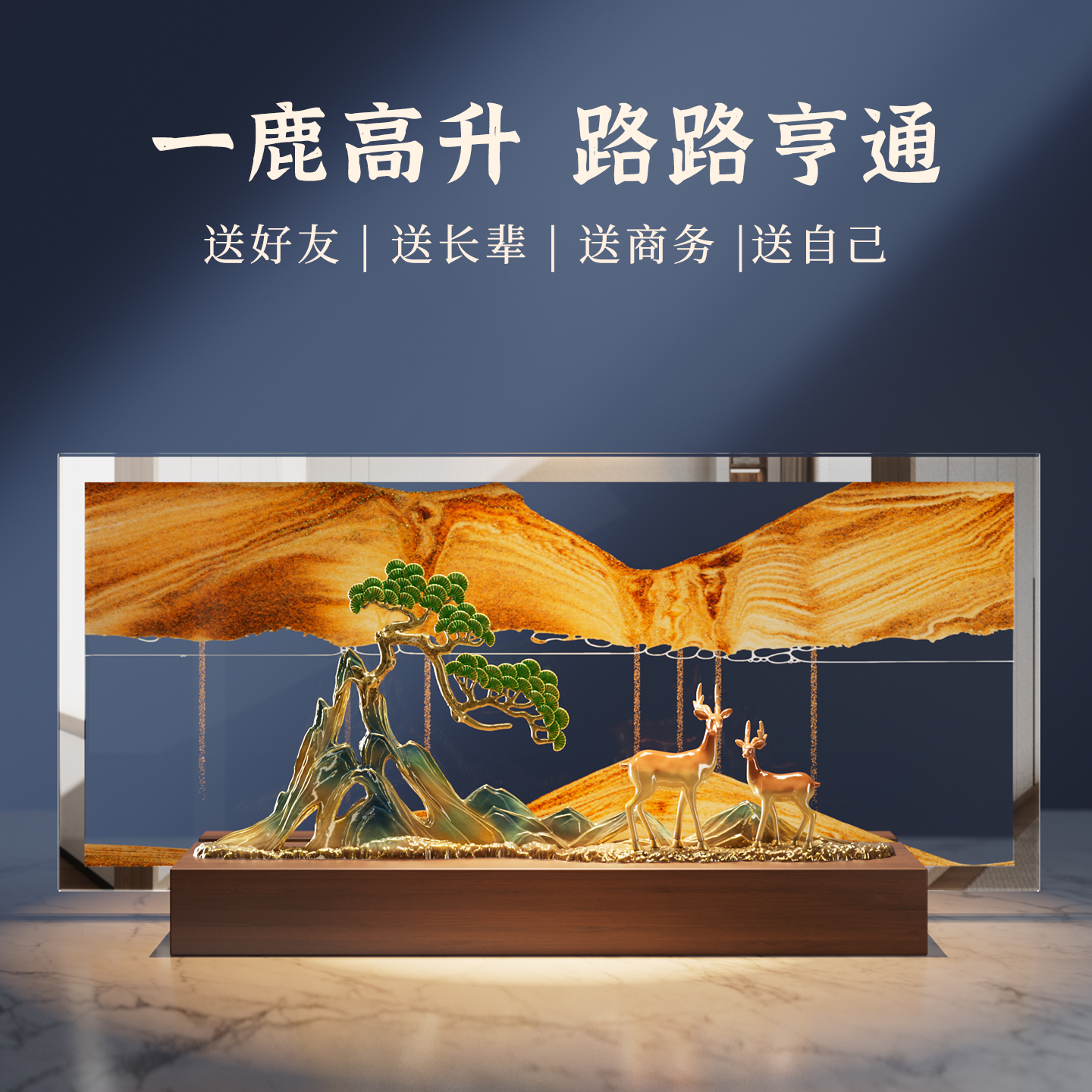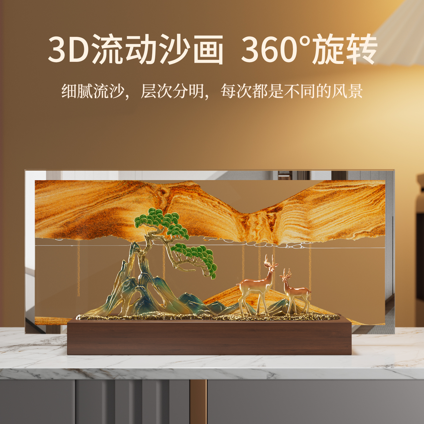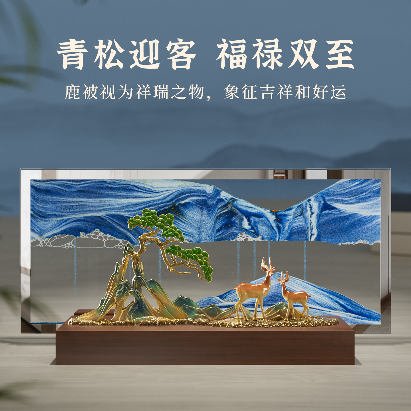 创意迎客松流沙画摆件高级感小众客厅酒柜装饰办公室桌面轻奢礼物