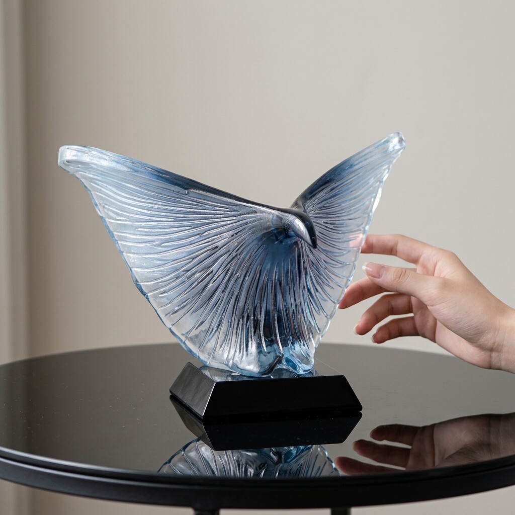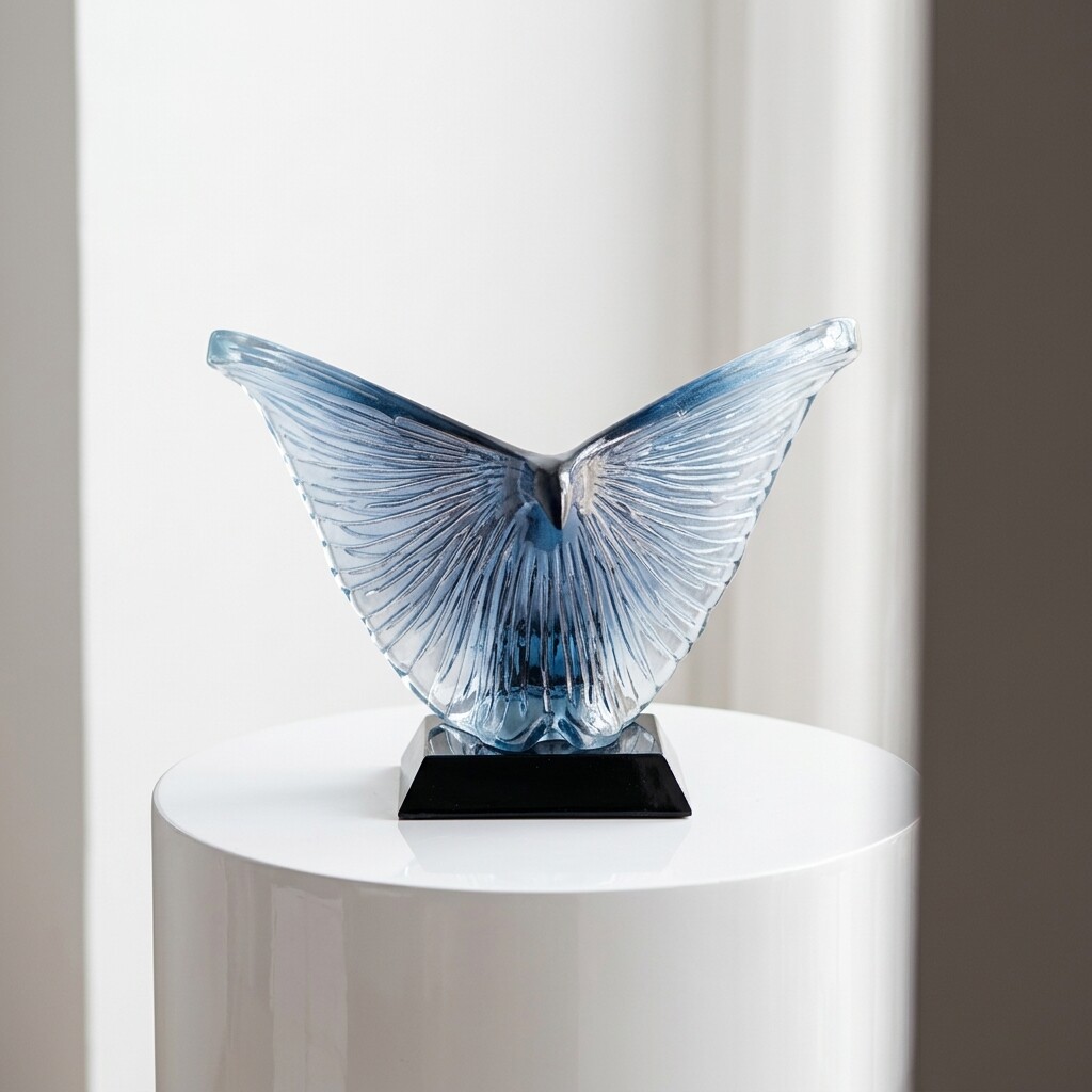 透明玻璃蝴蝶装饰摆件家居工艺品蓝色翅膀造型艺术品