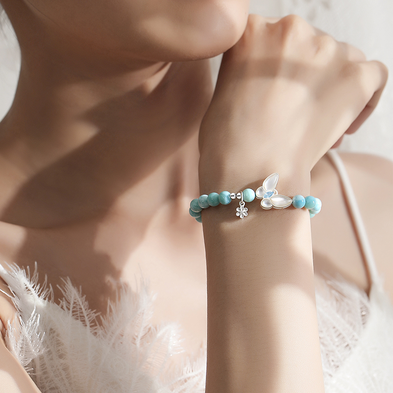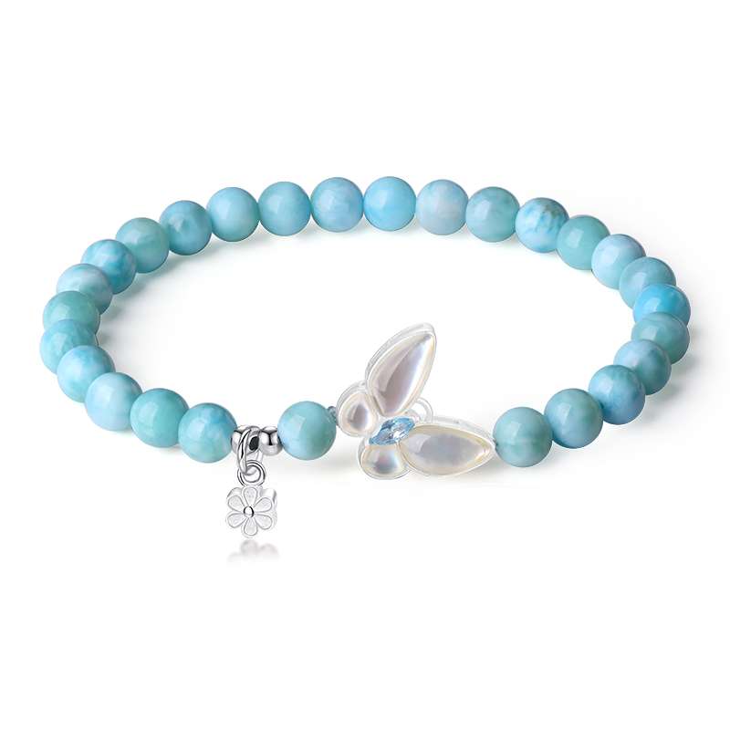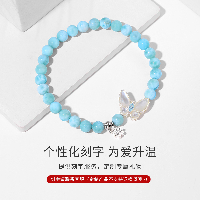 海纹石手串女蝴蝶贝母手链纯银小桃花手饰拉利玛天然水晶珠子串珠