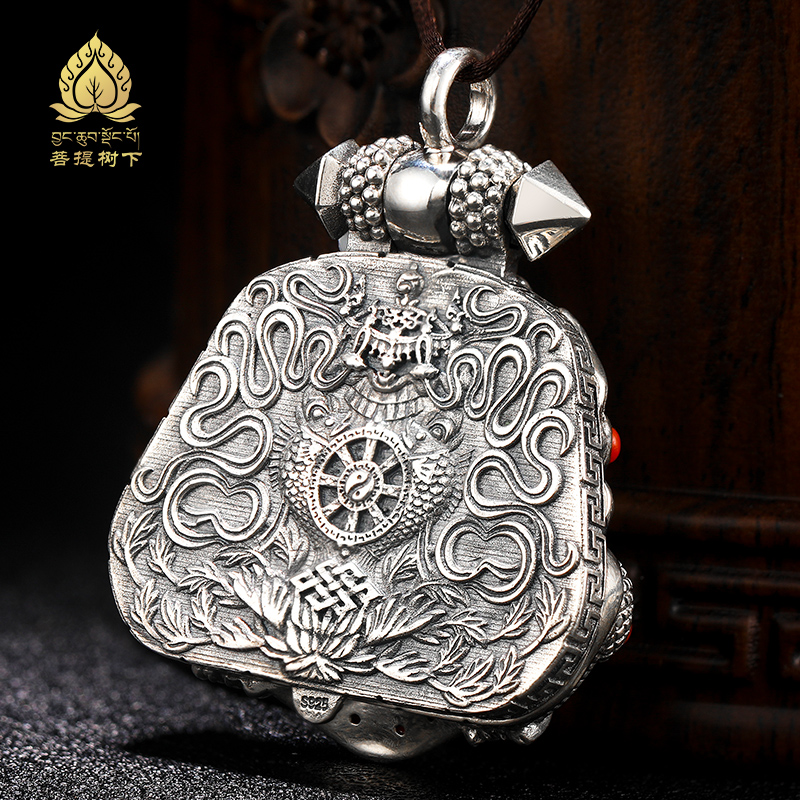 s925古纯银嘎乌盒吊坠大鹏金翅鸟嘎乌盒随身吊坠镶南红绿松