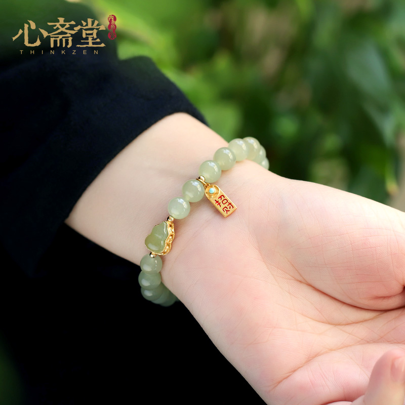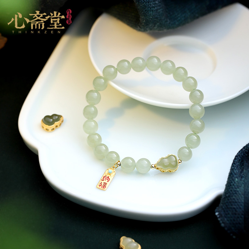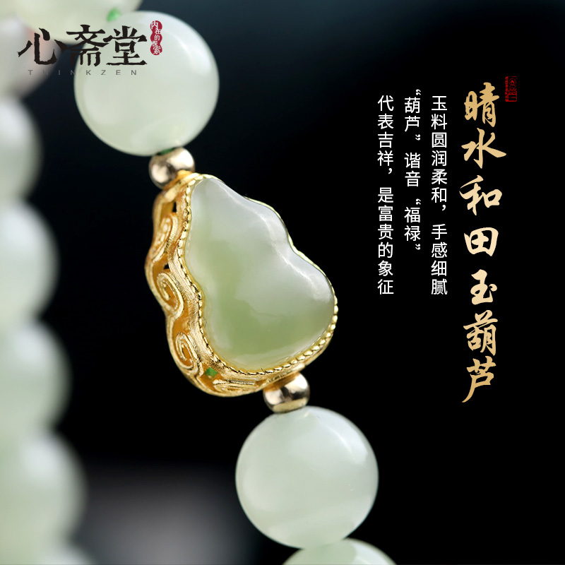 心斋堂【吸财葫芦】天然和田玉手串手链女款串珠冰晴水玉石散珠子