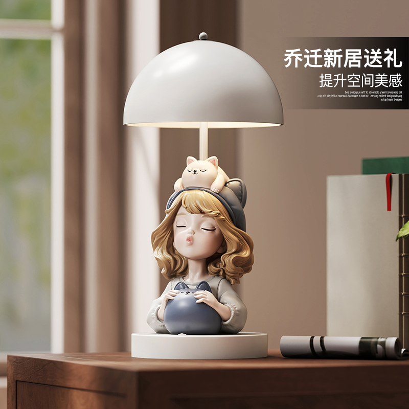 奶油风女孩台灯摆件客厅床头灯卧室小夜灯装饰送女生闺蜜生日礼物