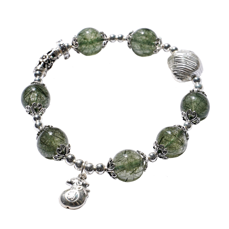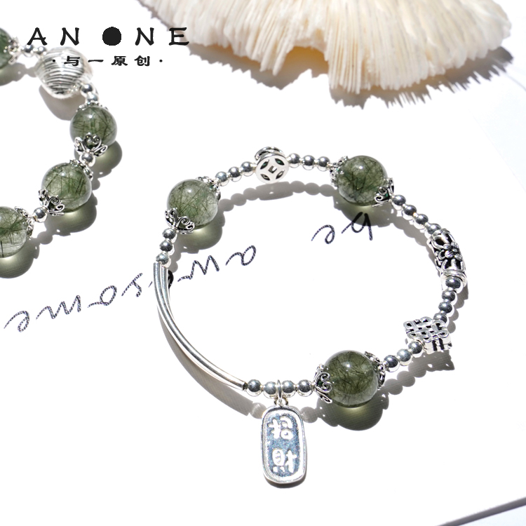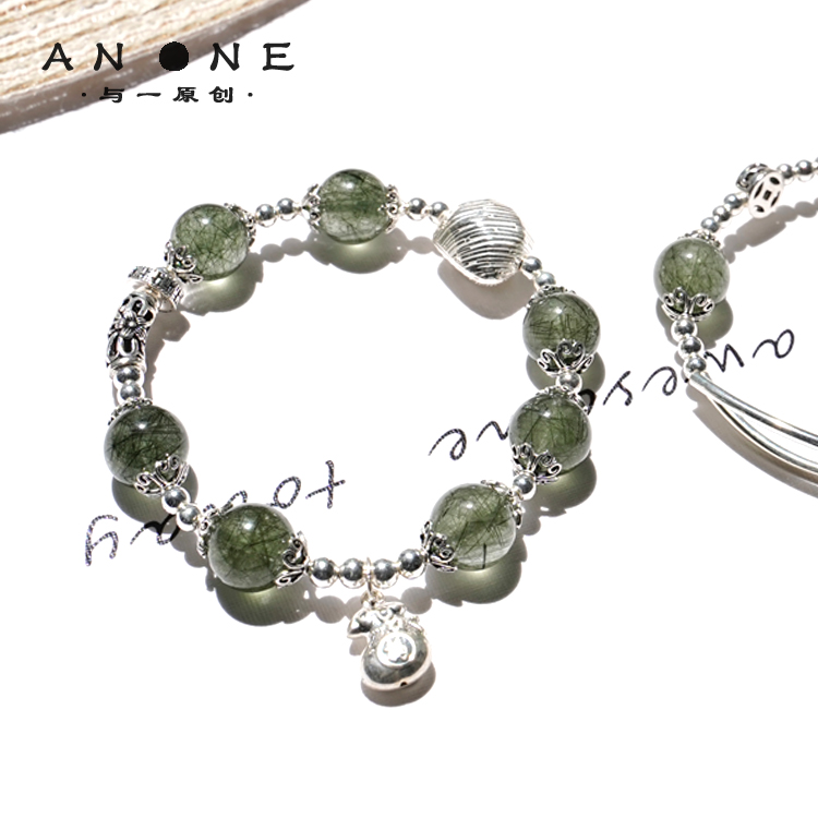 绿发晶手串 转运珠绿幽灵古风复古礼物 天然水晶手链女纯银正品