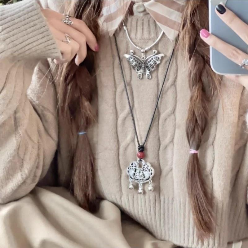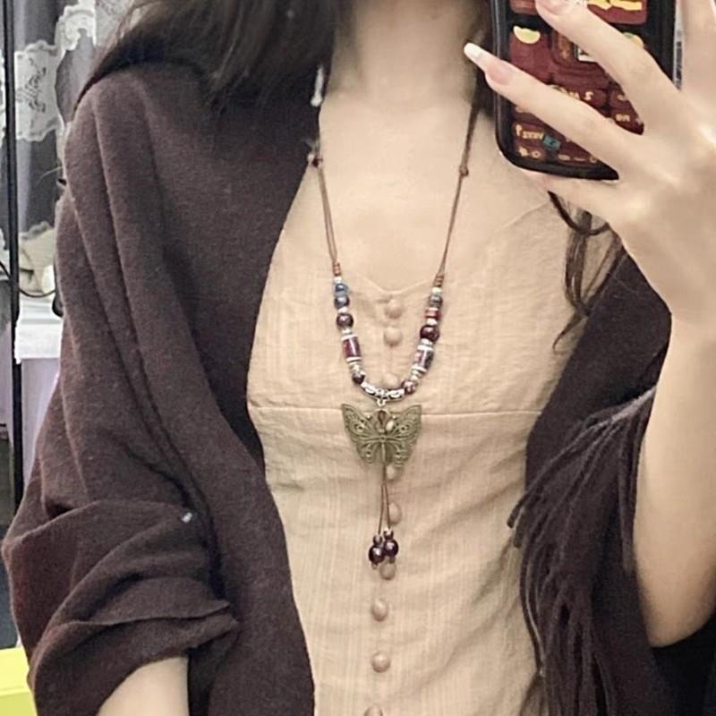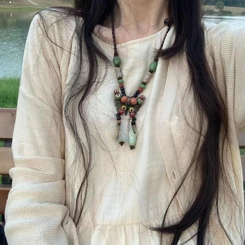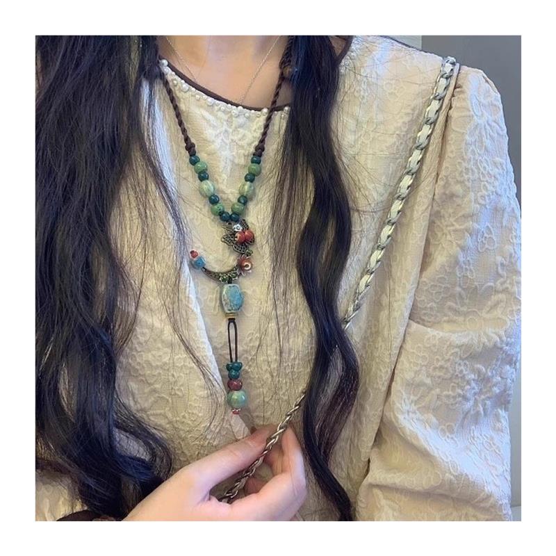 森系木圈新中式民族风项链女毛衣链长款高级感国风吊坠复古风配饰