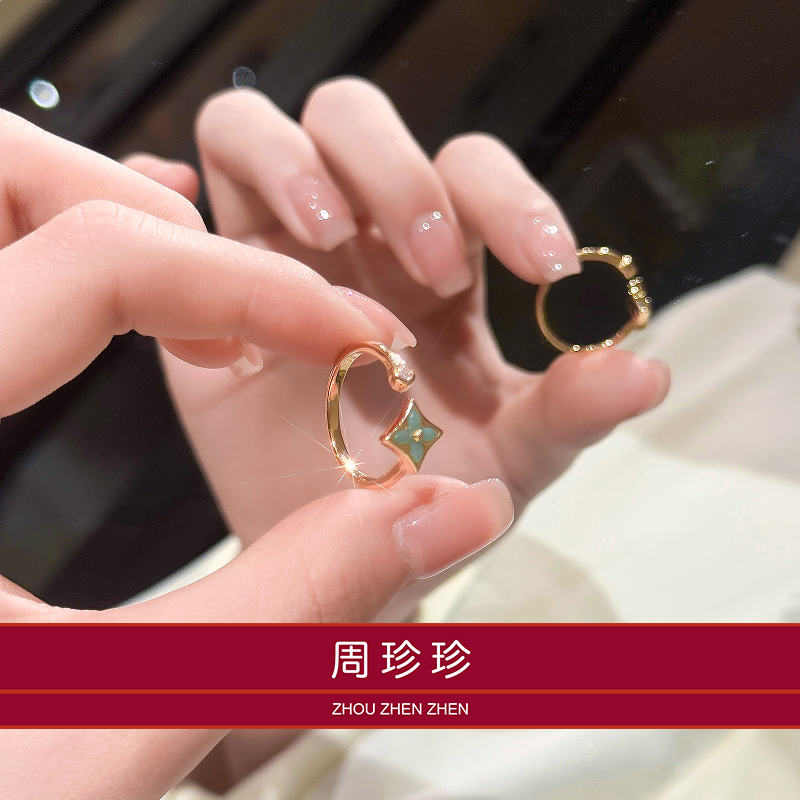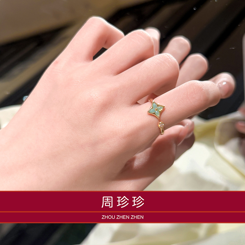 周珍珍18K女士戒指天河石锆石头爆闪孔雀石镶钻开口指环送女友