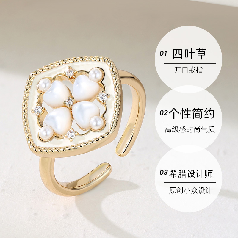 【自营】vitaringVITARING小香风贝母复古四叶草开口戒指原创设计