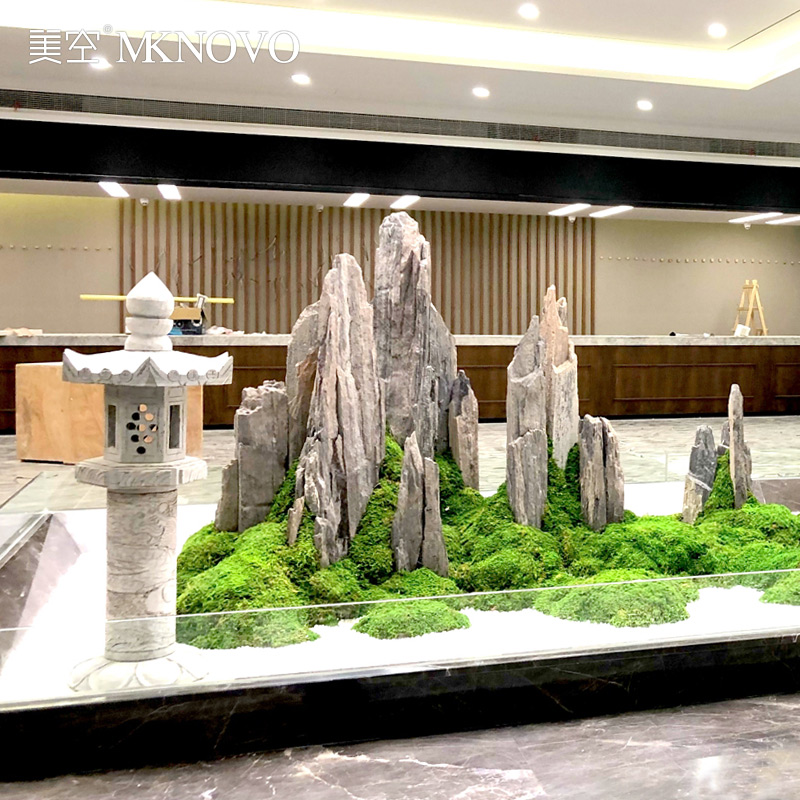 天然斧劈石装饰盆景微景观假山石头造景永生苔藓石灯摆件/美空780