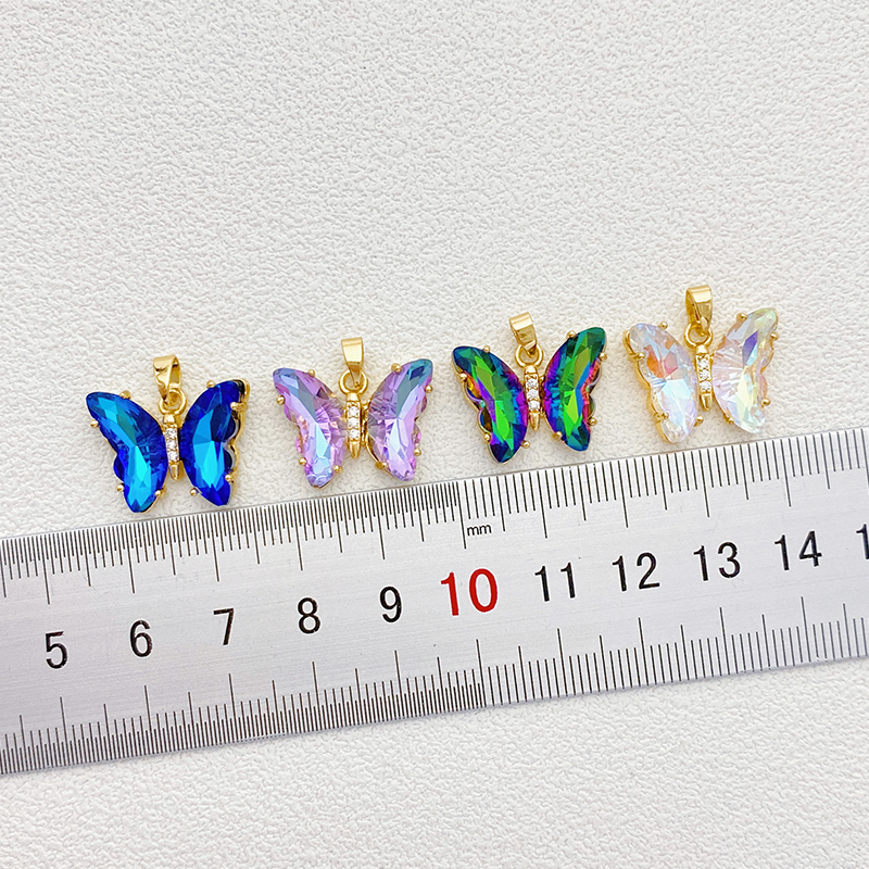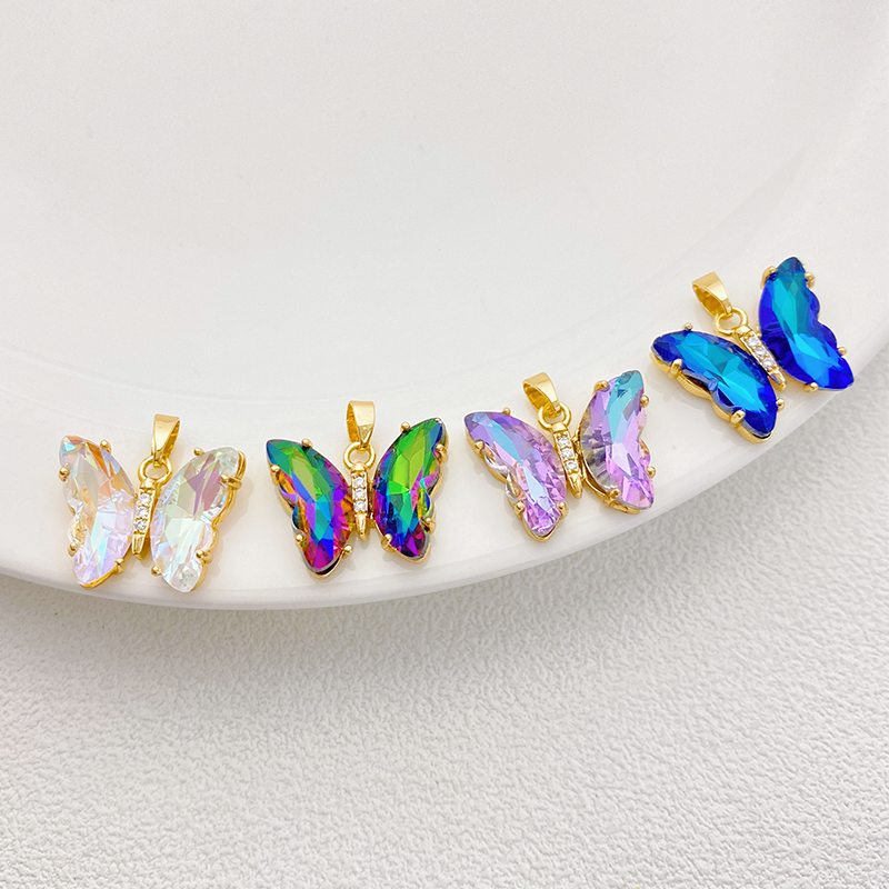 14K包金保色镶锆石幻彩蝴蝶吊坠挂件手工diy手链项链饰品材料配件