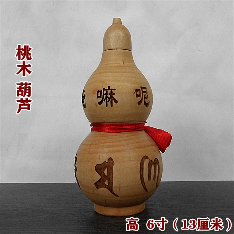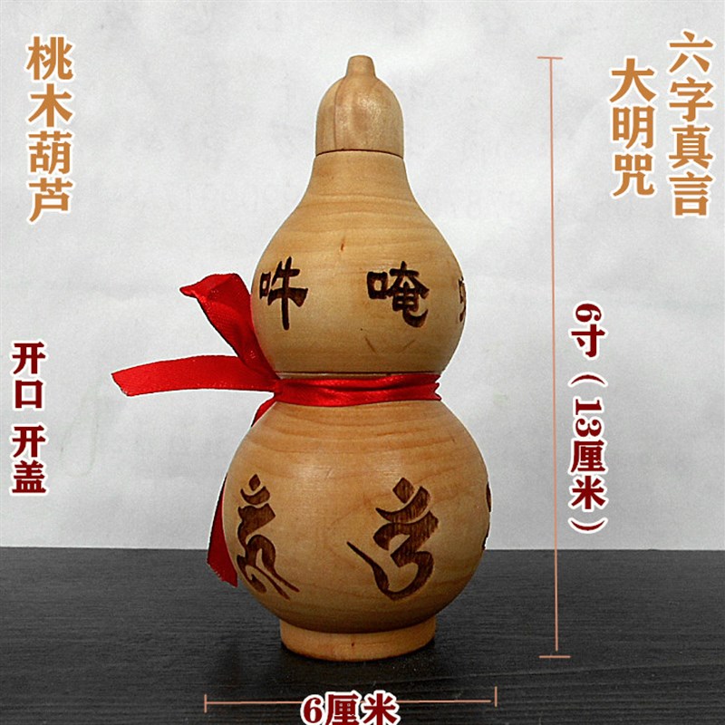 六字真言大明咒开盖开口空心桃木葫芦挂件家居办公室卧.室桌面摆