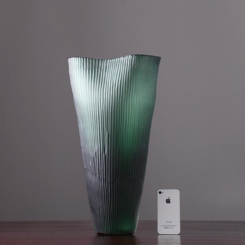 美式墨绿色磨刻玻璃北欧客厅插花餐桌干花落地花瓶摆件装饰品摆设