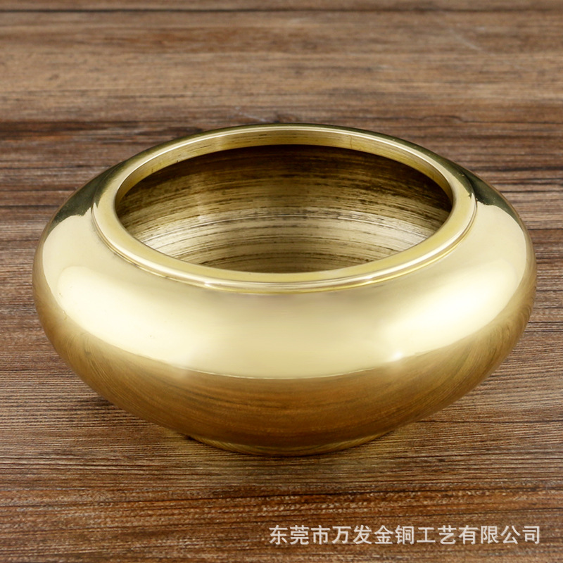 黄铜烟灰缸复古创意简约欧式高档全铜烟缸摆件家用办公室客厅铜钵