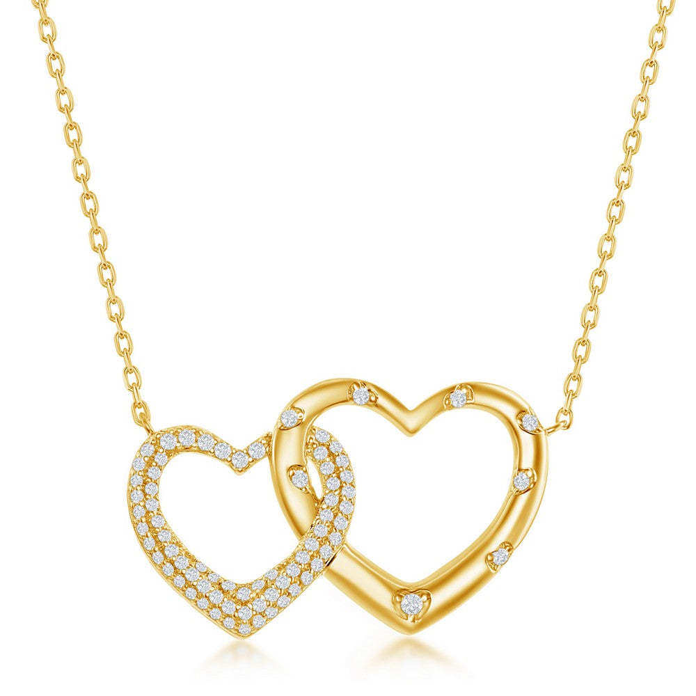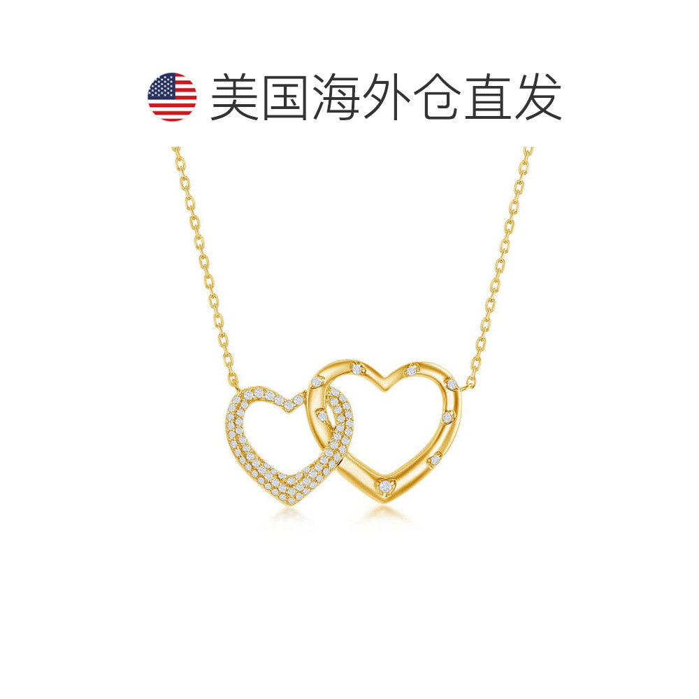 自营 simona925 纯银微型密镶 CZ 互扣心形项链 - 金色 美国奥莱