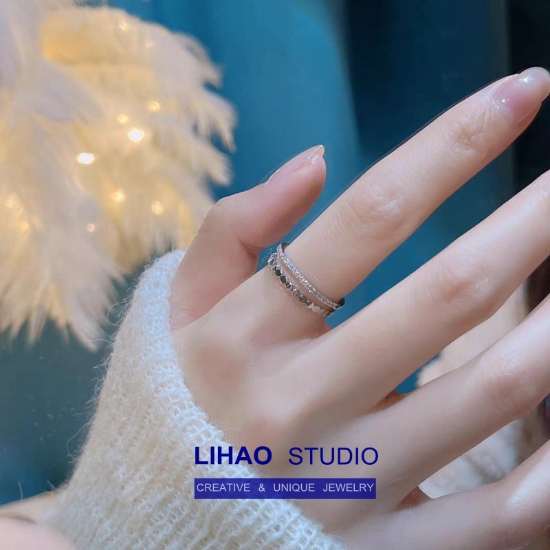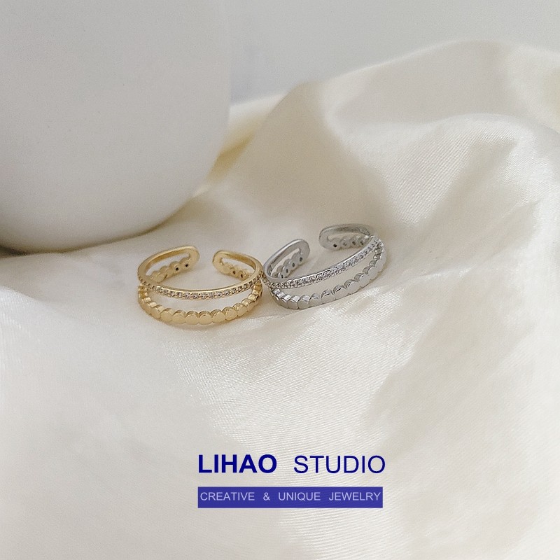 LIHAO简约双层微镶锆石戒指女蜂巢ins时髦日韩百搭可调节开口指环