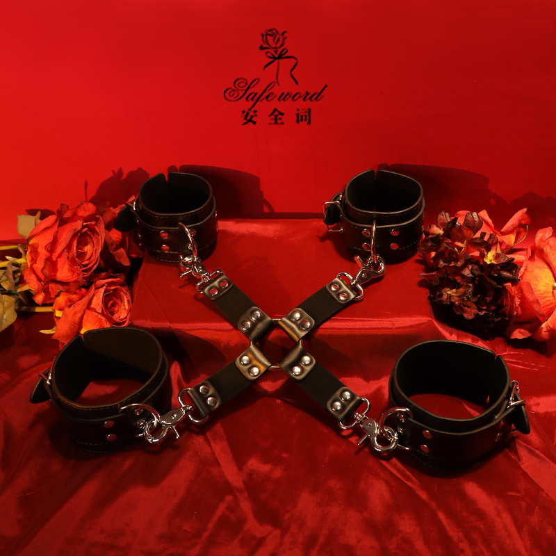 手脚铐束缚十字扣铐可捆绑皮革手铐脚镣一体分腿惩罚道具sp工具