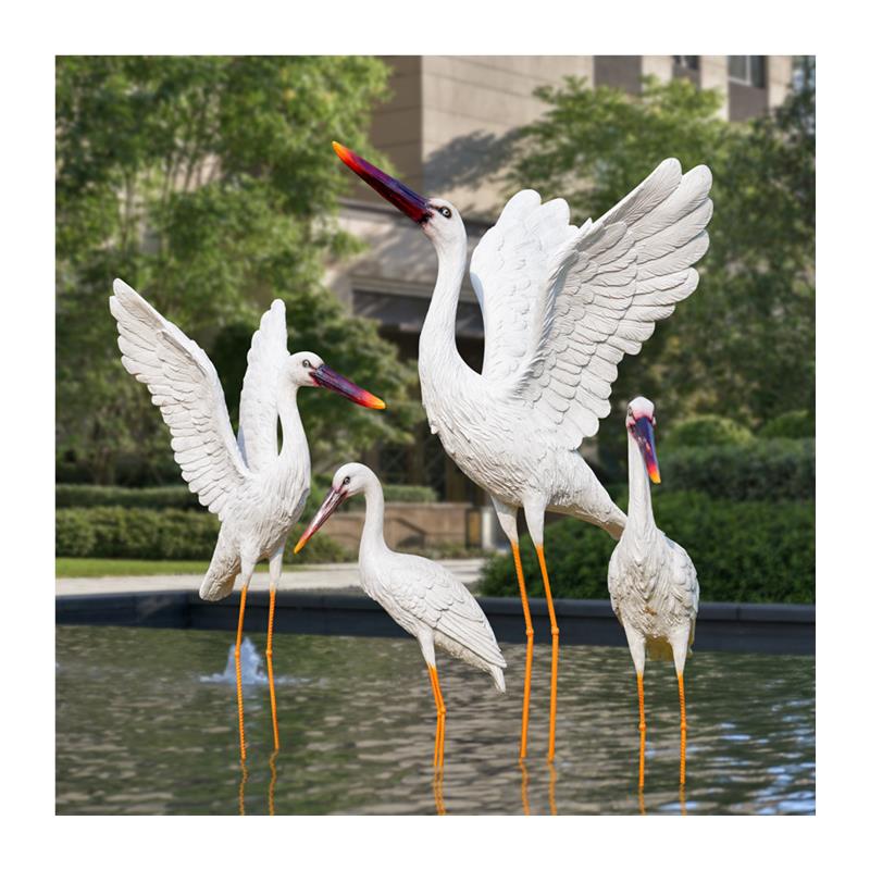 户外仿真白鹭雕塑水池公园售楼部草坪景区景观装饰摆件玻璃钢仙鹤