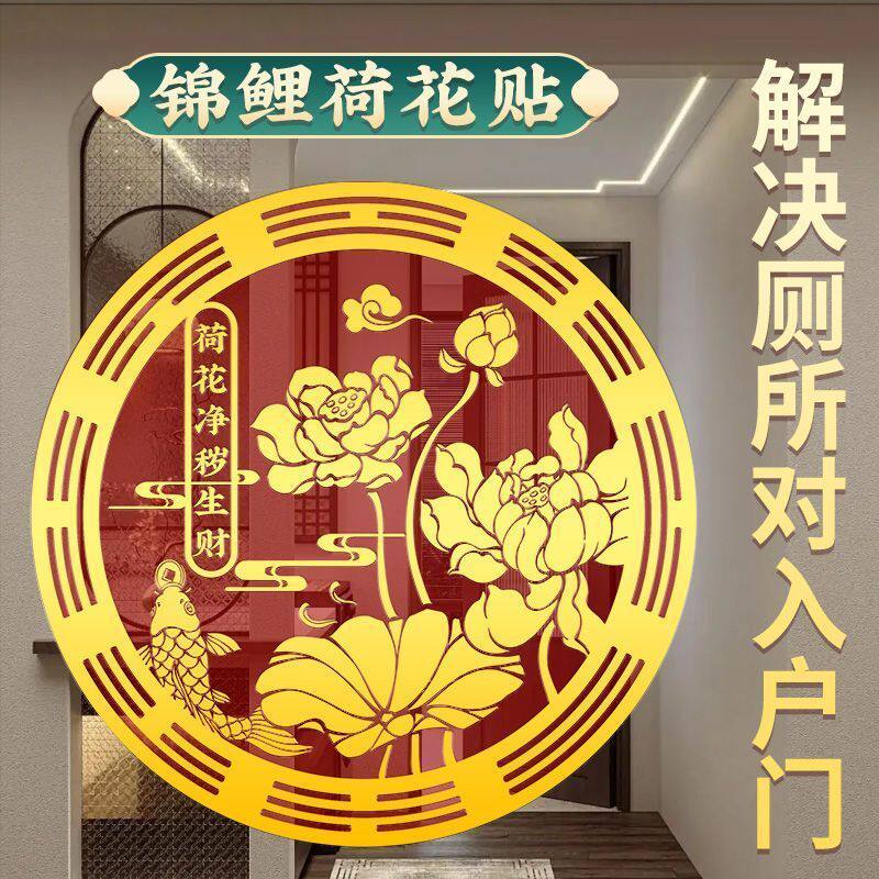 泰哥推荐荷花好运化解莲莲贴纸西北卫生间厕所门贴鞋柜锦鲤莲花