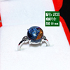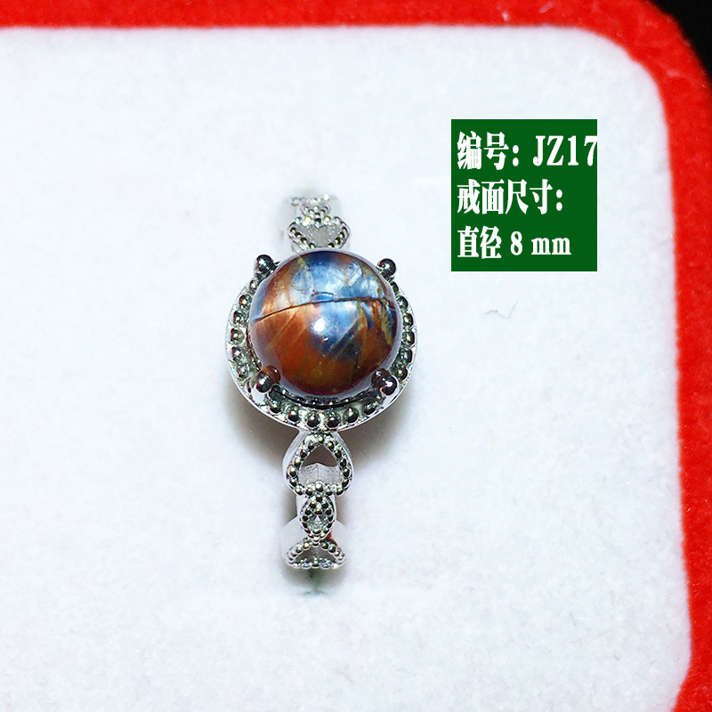 天然彼得石戒指淅川料精品蛋面火彩猫眼宝石戒面镶嵌银戒指防过敏