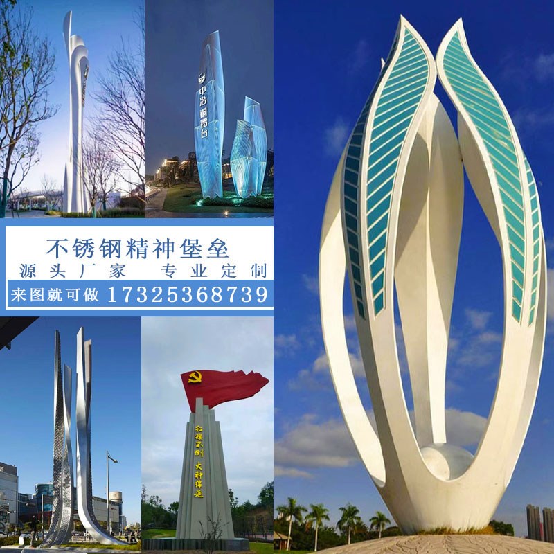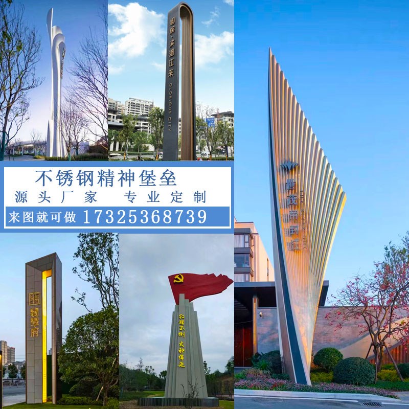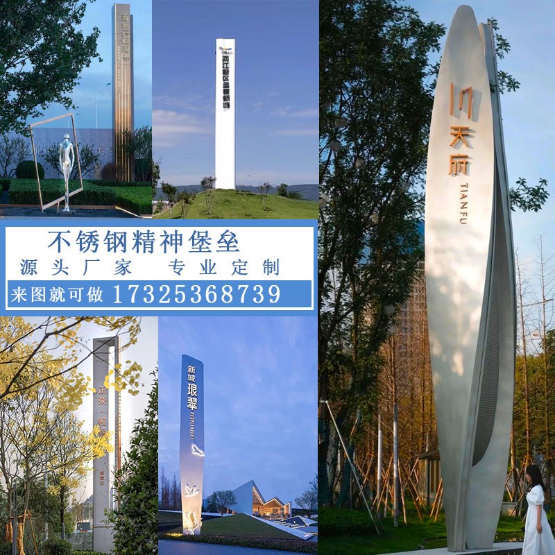 大型不锈钢雕塑精神堡垒广场地产商场地标建筑导向牌廊架创意摆件