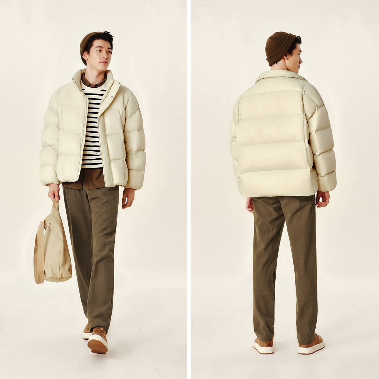 森马羽绒服男厚款面包服2024冬新款oversize百搭纯色三防外套立领