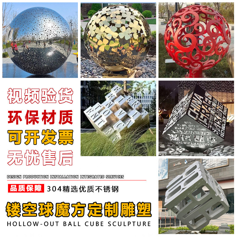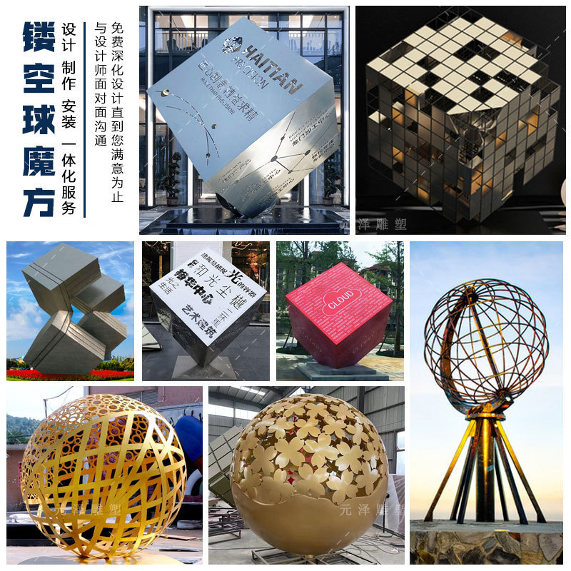 热销不锈钢魔方雕塑广场价值观方块发光球摆件社会步行街酒店装饰