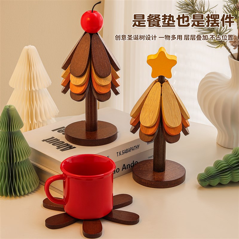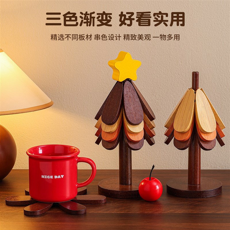圣诞树隔热垫g餐桌摆件创意一棵树实木防烫锅垫杯垫家居好物厨房