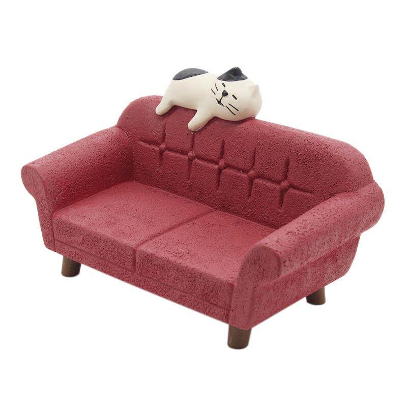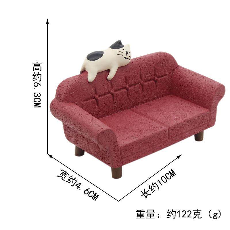 红色沙发椅子日式INS猫咪ZAKKA创意微缩场景公仔小摆件