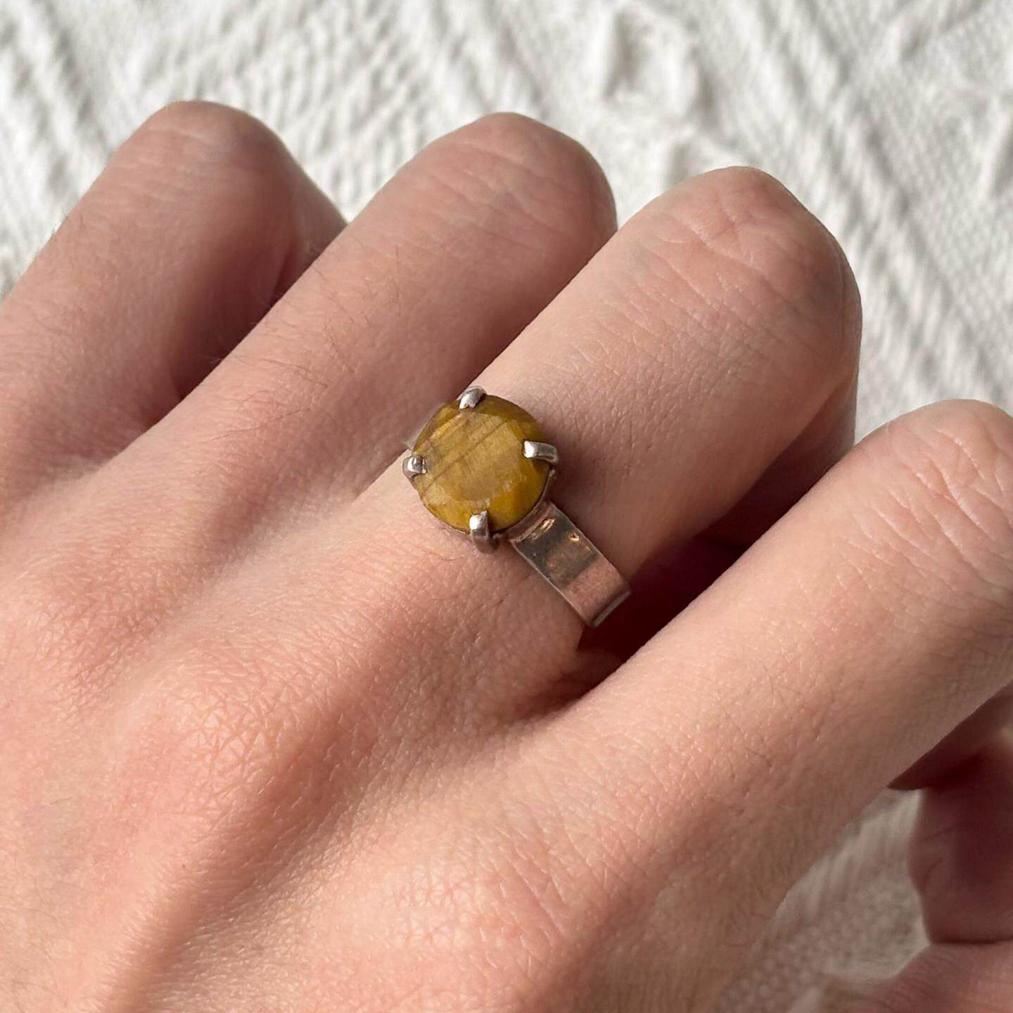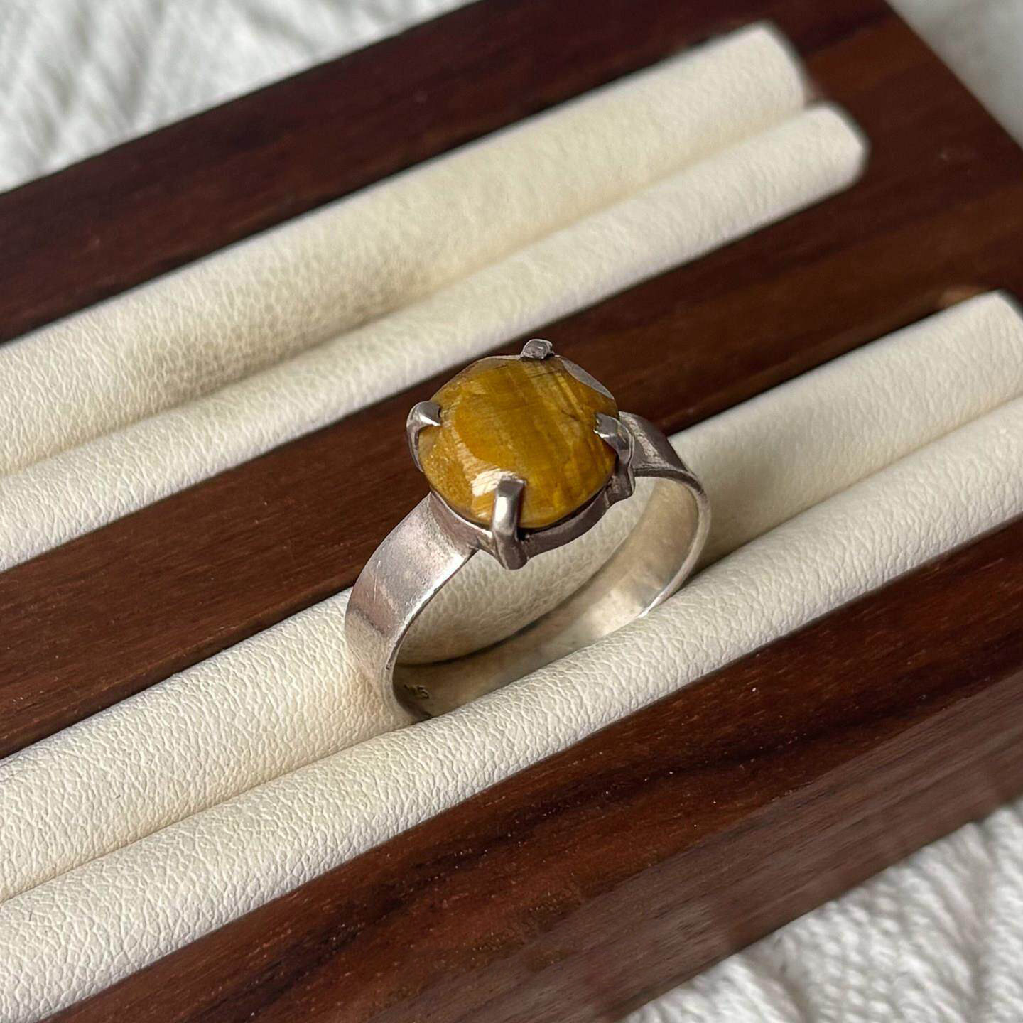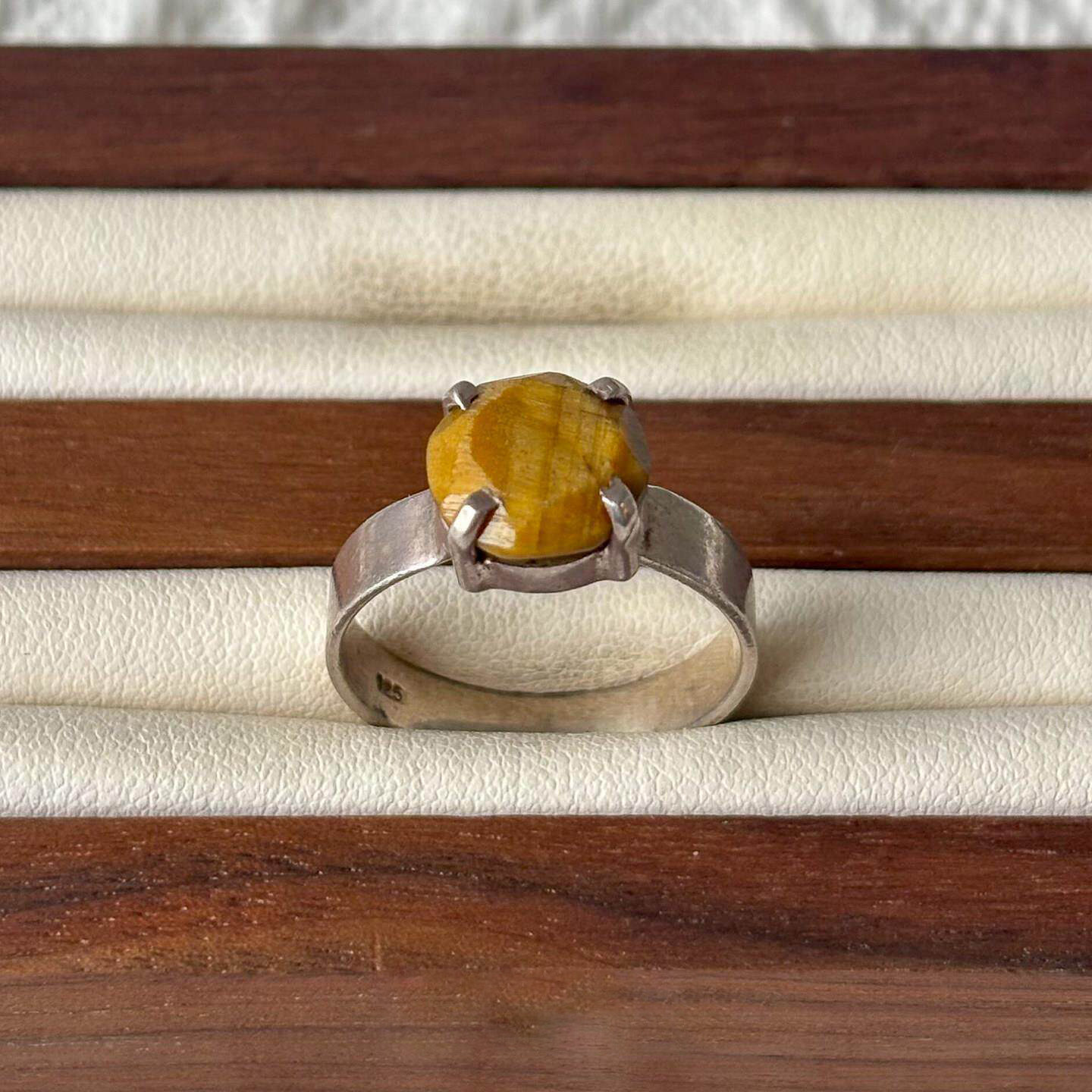 vintage中古黄色仿虎眼石戒指文艺复古简约食指戒女个性百搭指环