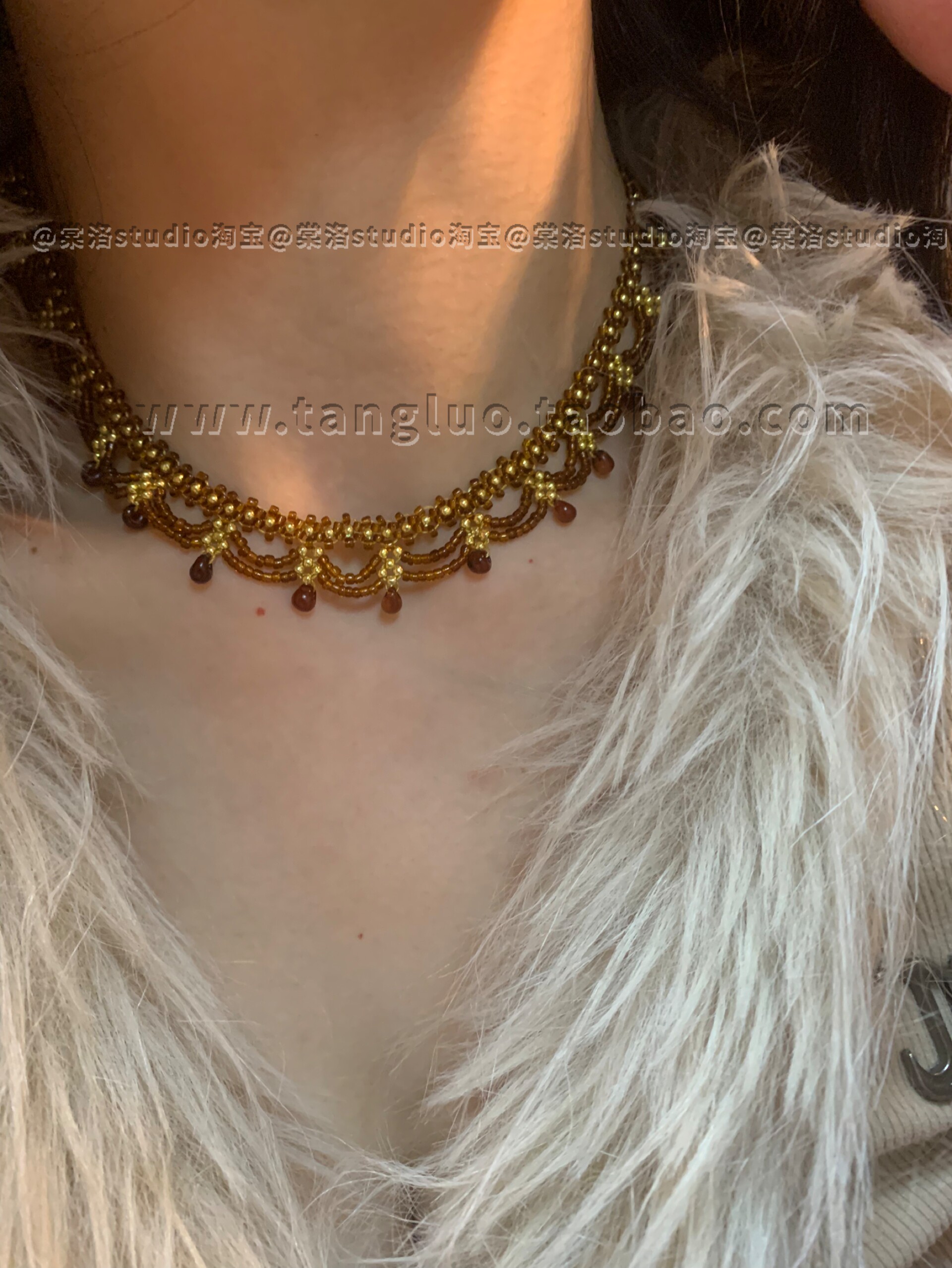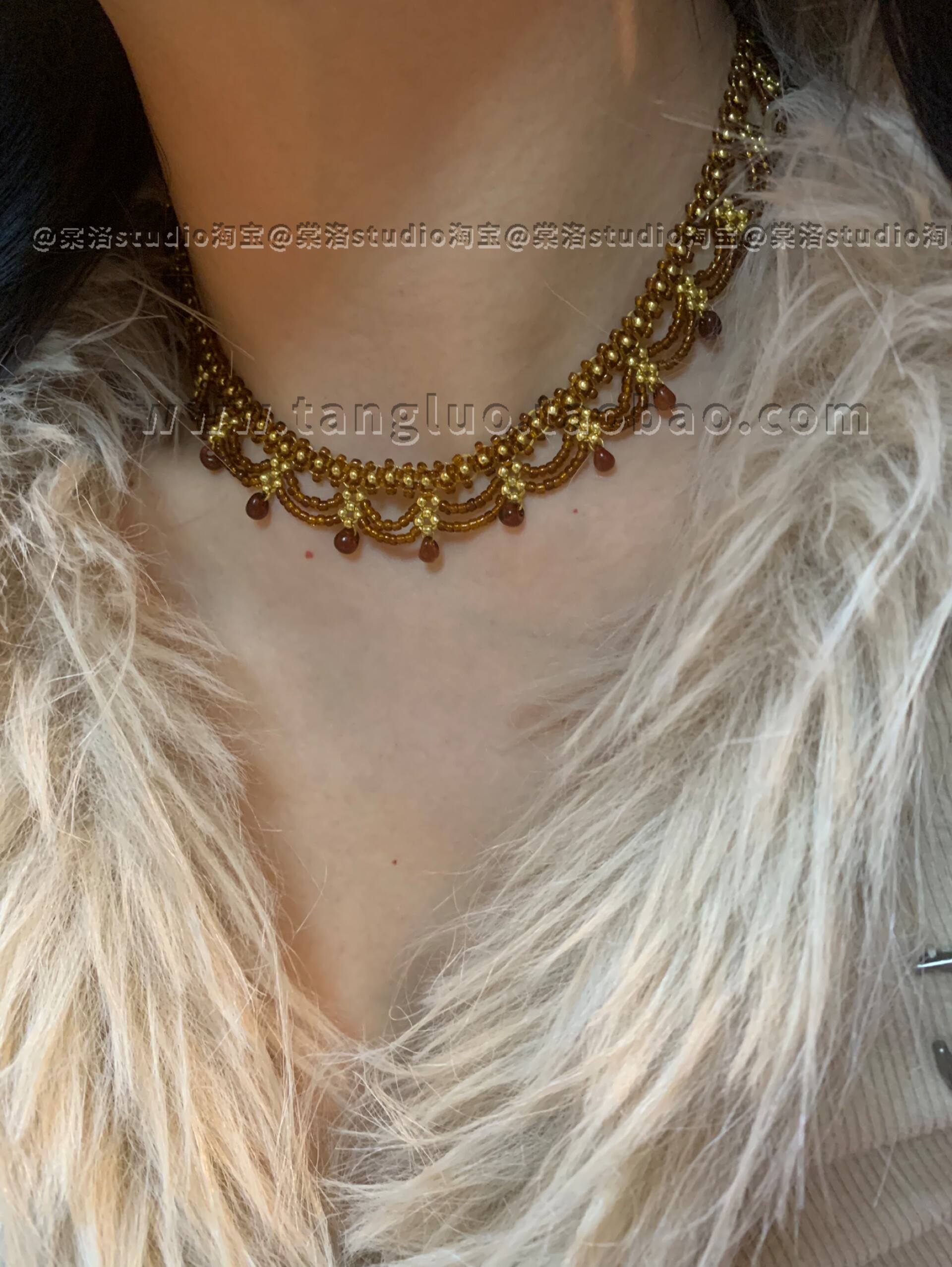 棠洛原创手作咖色米珠蕾丝choker颈链女废土风锁骨链波西米亚饰品