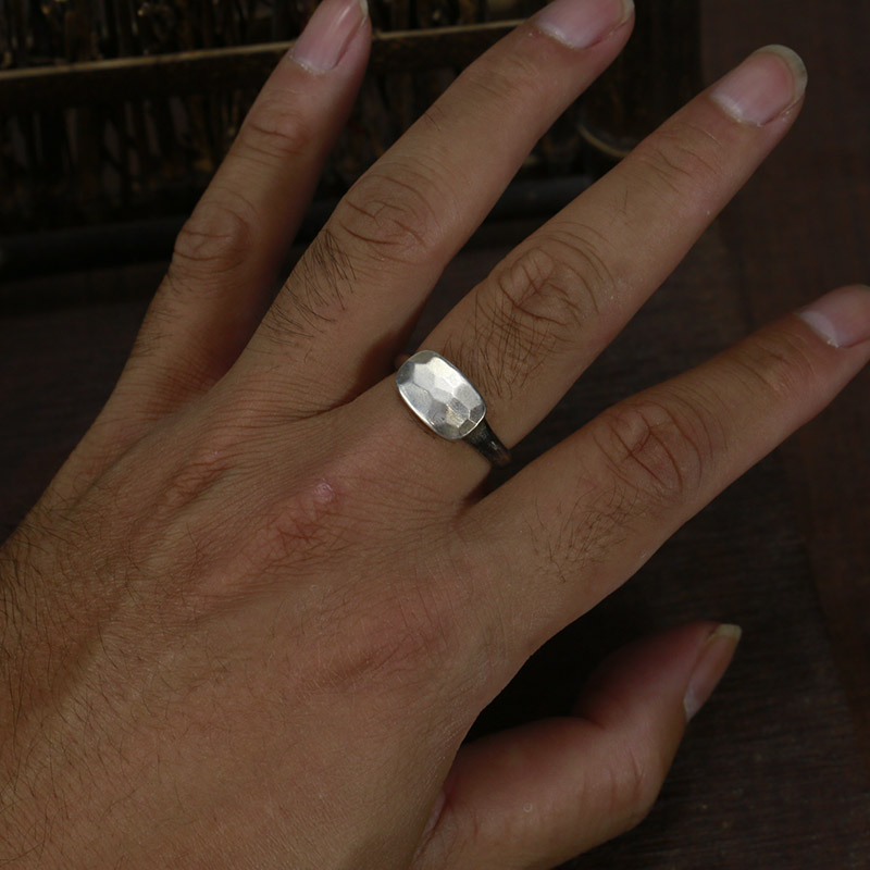 牛钝精工Werkstatt Mumchen暗黑工业风锤纹敲痕手工擦痕戒指925银