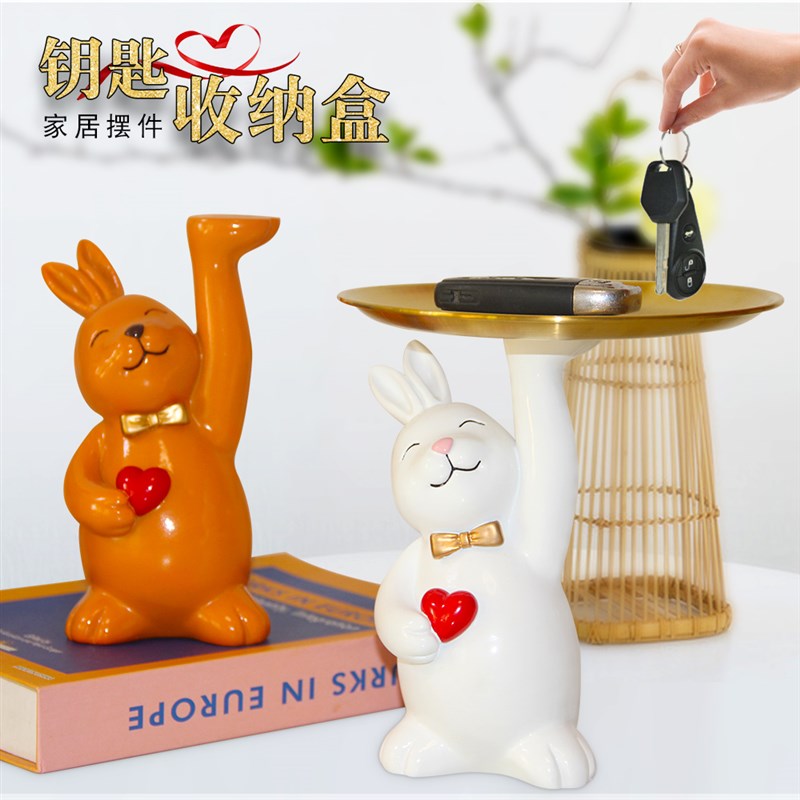 入户玄关钥匙收纳盒轻奢兔子托盘摆件家居客厅鞋柜装饰品乔迁礼品