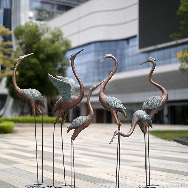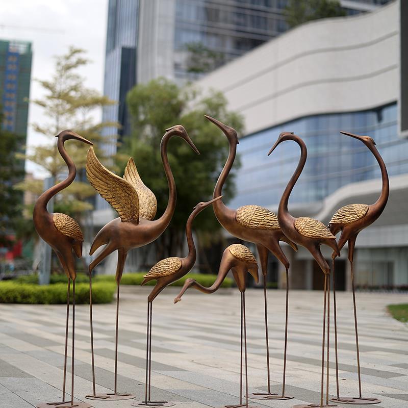 户外仿铜仙鹤摆件假山水池丹顶鹤房地产售楼处抽象动物造景装饰品